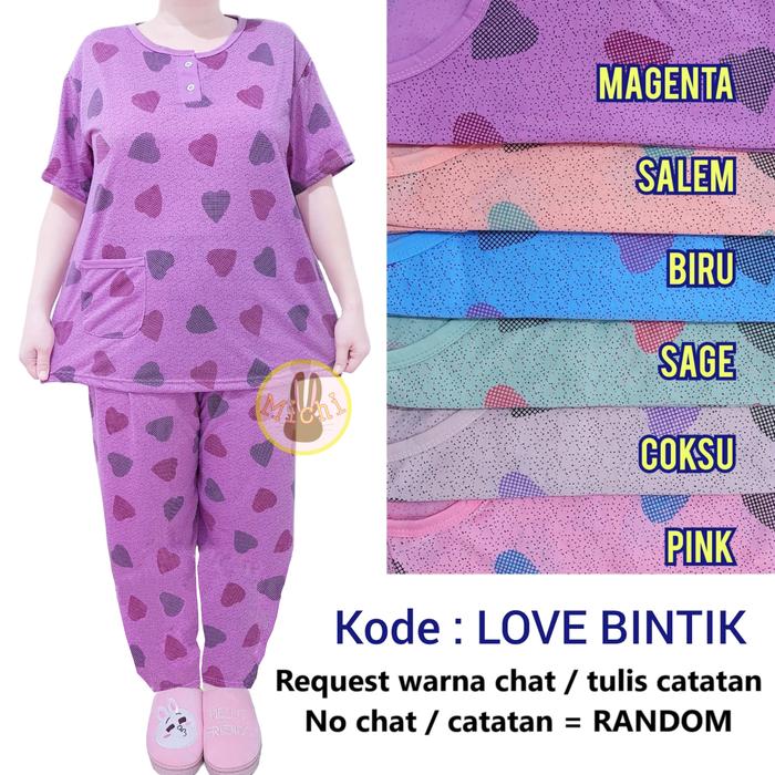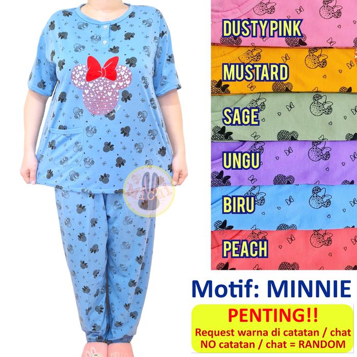 Baju Tidur Dewasa CP XXL Jumbo Kaos Setelan Piyama Wanita Celana Panjang tangan Pendek babydoll - Motif 1 XXL