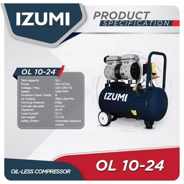 Compressor Oiless IZUMI 1024 1HP Kompresor Angin Tanpa Oli 24 liter