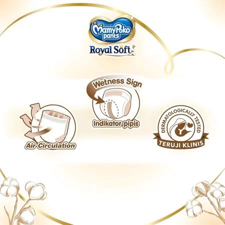 PAMPERS MAMYPOKO ROYAL SOFT PAKET 4 2 BALL PANTS CELANA PEREKAT NEWBORN UKURAN S 46 M 42 L 34 XL 30 XXL 24 BEST SELLER