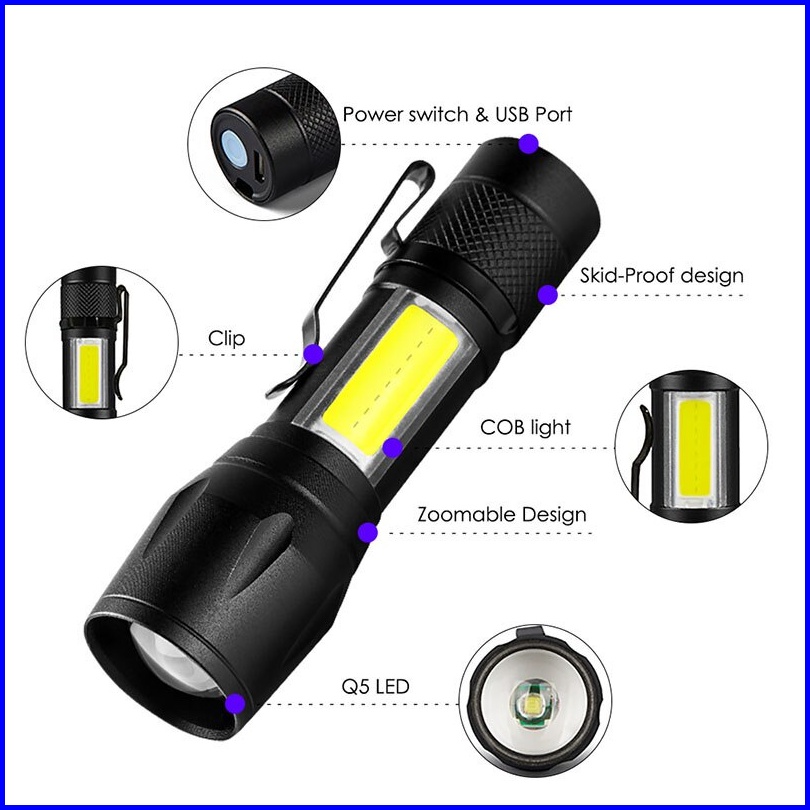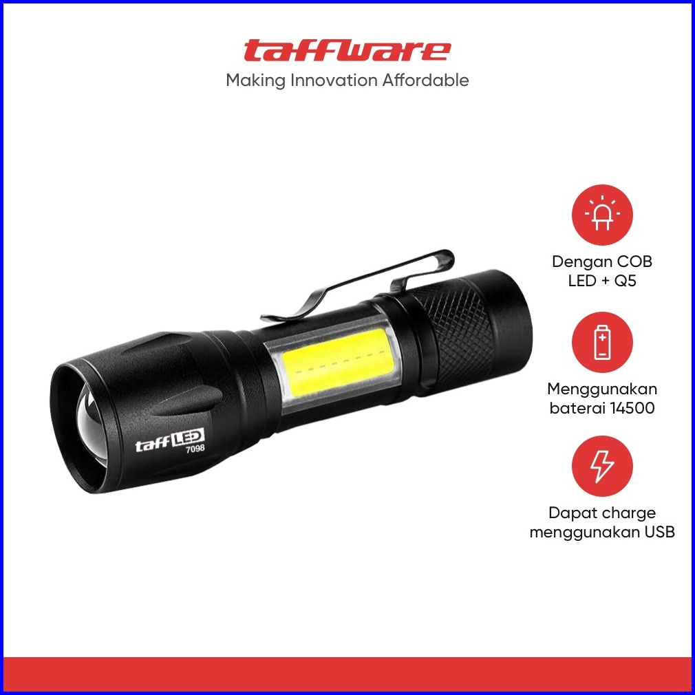 Taffled Senter Led Mini Battery Rechargeable Q5 Cob 300 Lumens