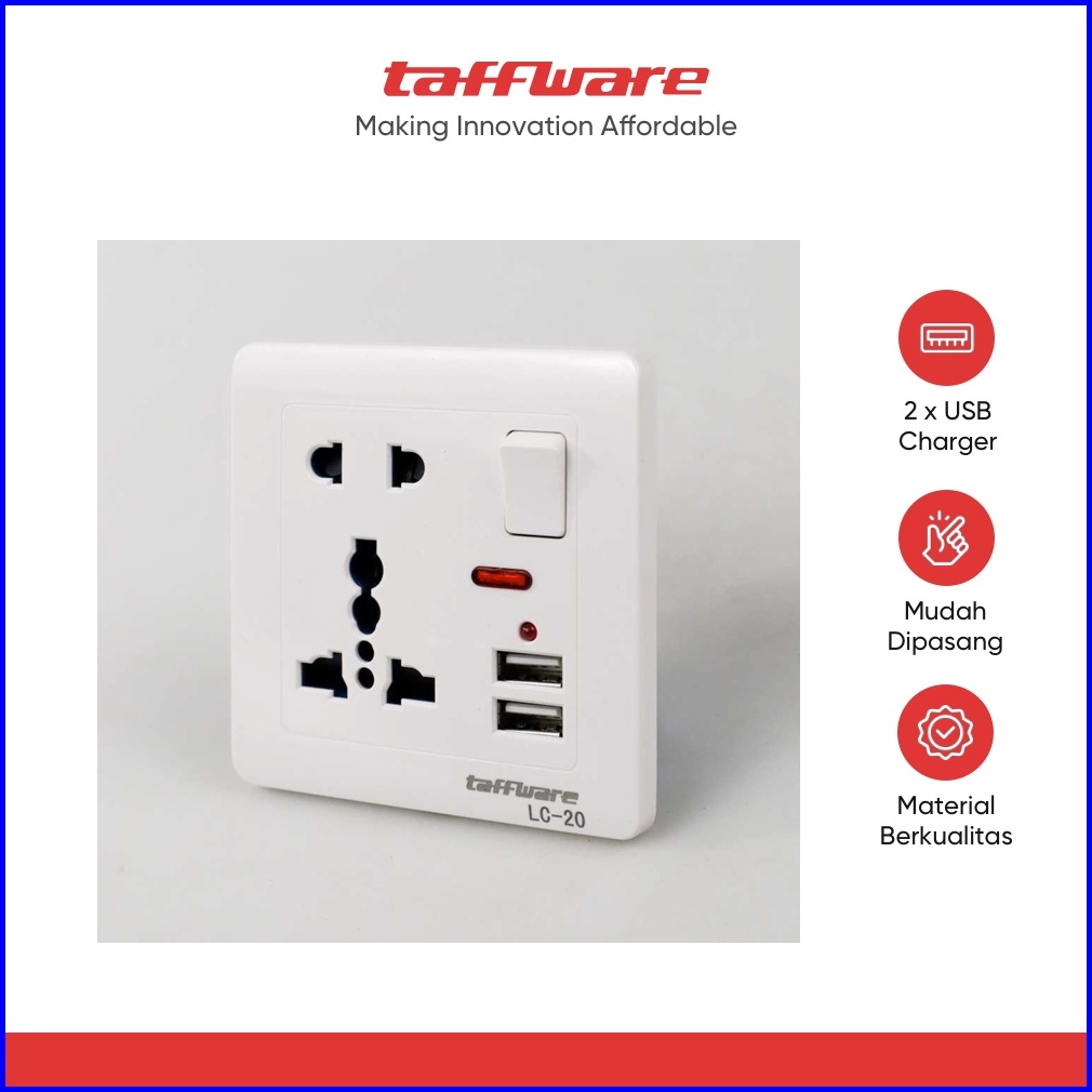 Taffware Stop Kontak Universal Uk Eu Us 2 Port Usb On Off Switch - Lc-20