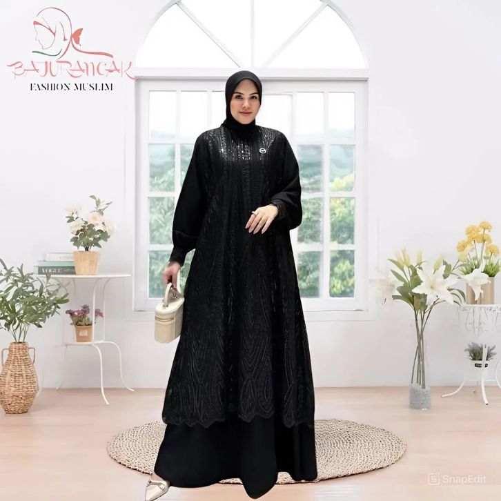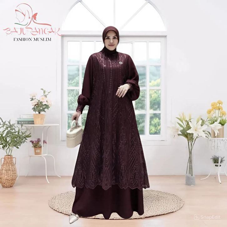 lunarra lace baju gamis raya wanita muslimah bahan ceruty babydoll mix brokat mewah elegan pesta