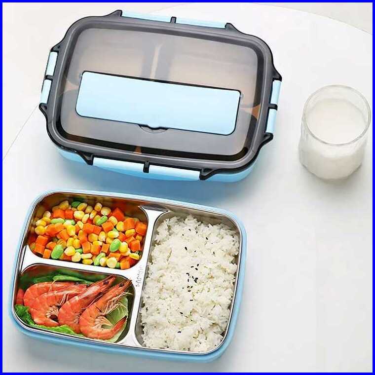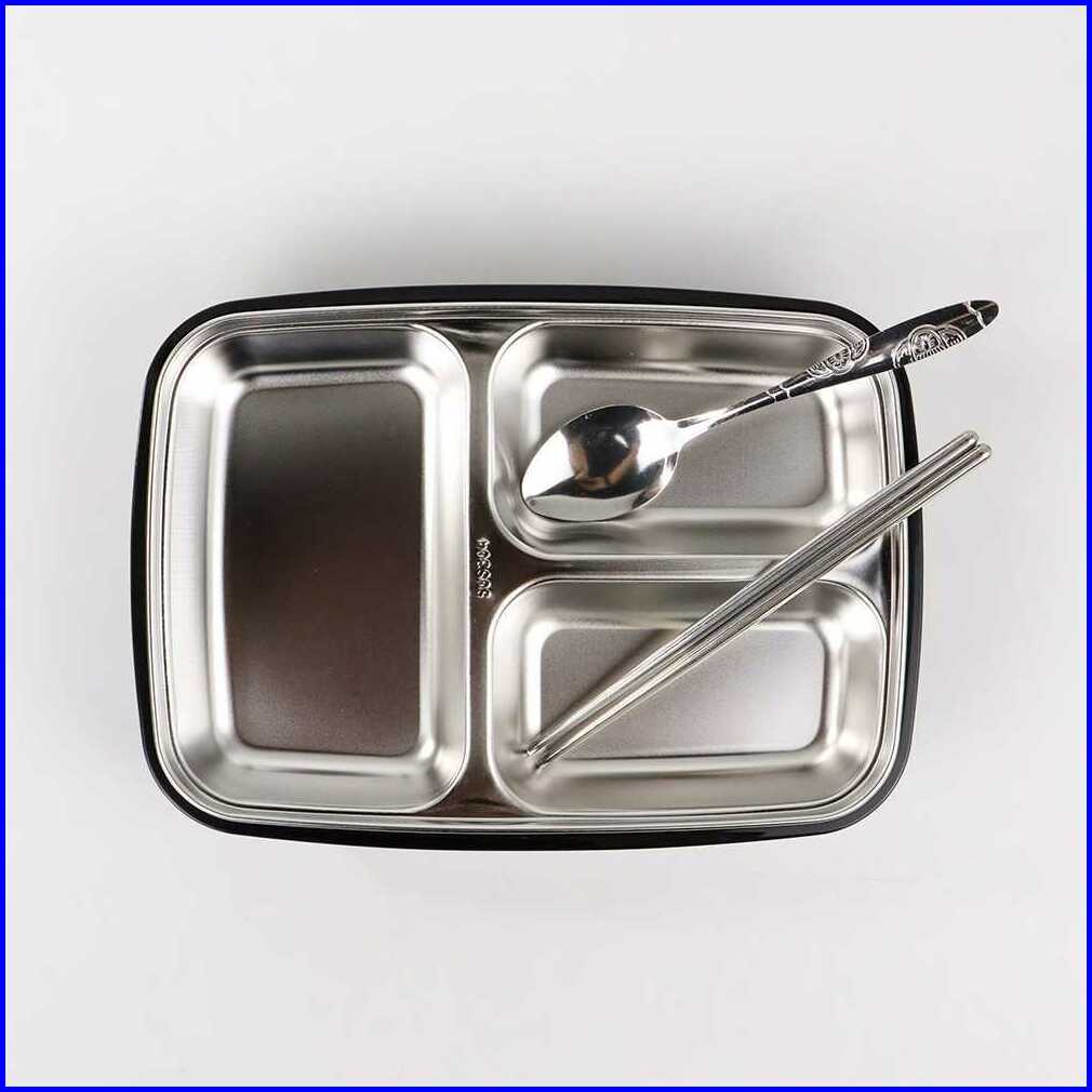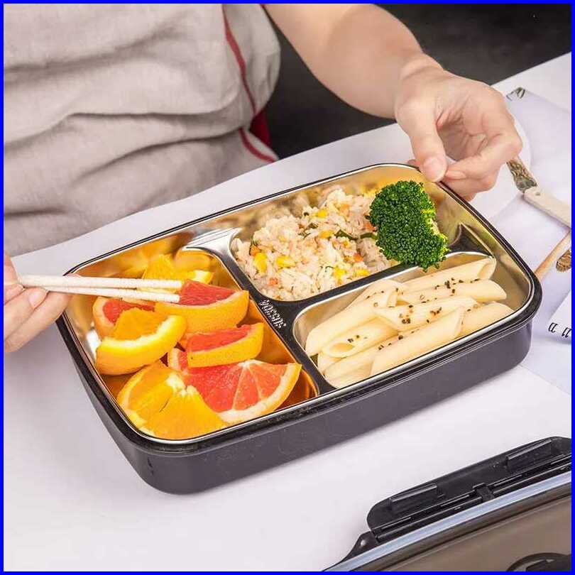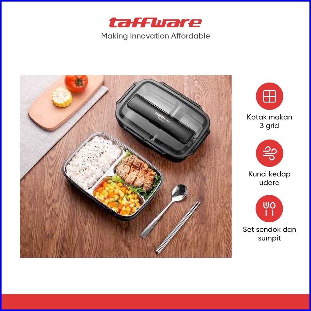 Taffhome Kotak Makan Healthy Bento Lunch Box 3 Grid With Spoon Chopstick - Ou1000 - Black