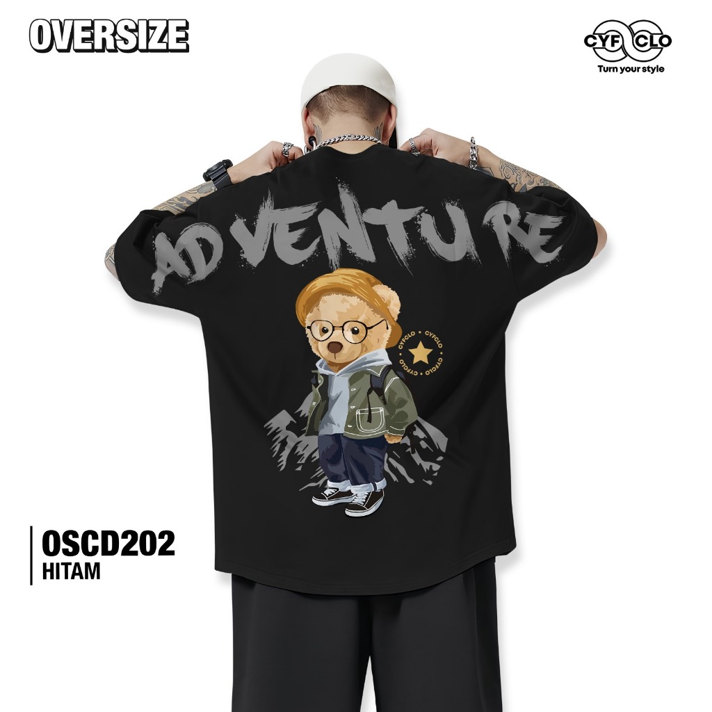 CYFCLO KAOS OVERSIZE HEAVYWEIGHT 16S HITAM PUTIH OSCD202 BEAR ADVENTURE BAJU ATASAN TEBAL