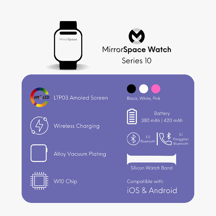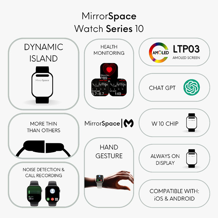 MirrorSpace Watch 10 Dynamic Island, LTPO3-AMOLED, AI Assistant Jam Tangan Smartwatch Pria Wanita Waterproof