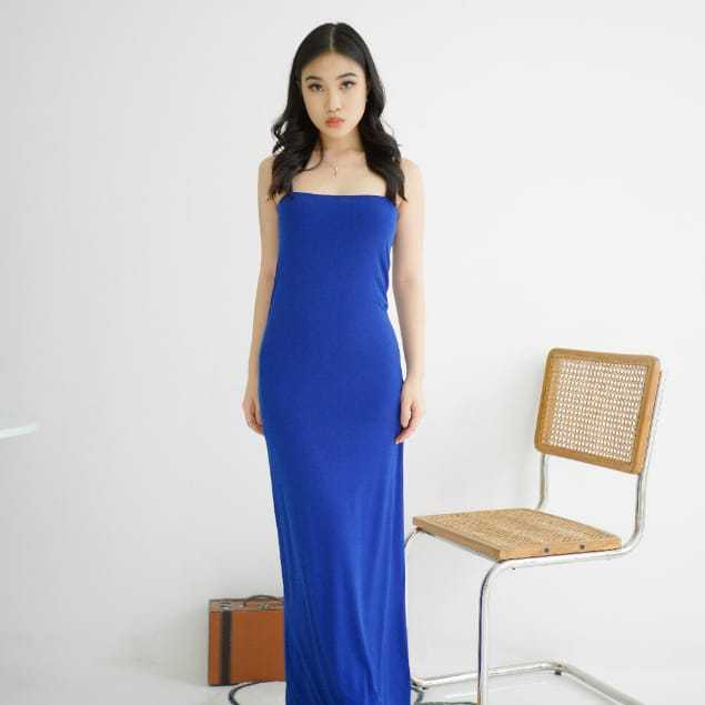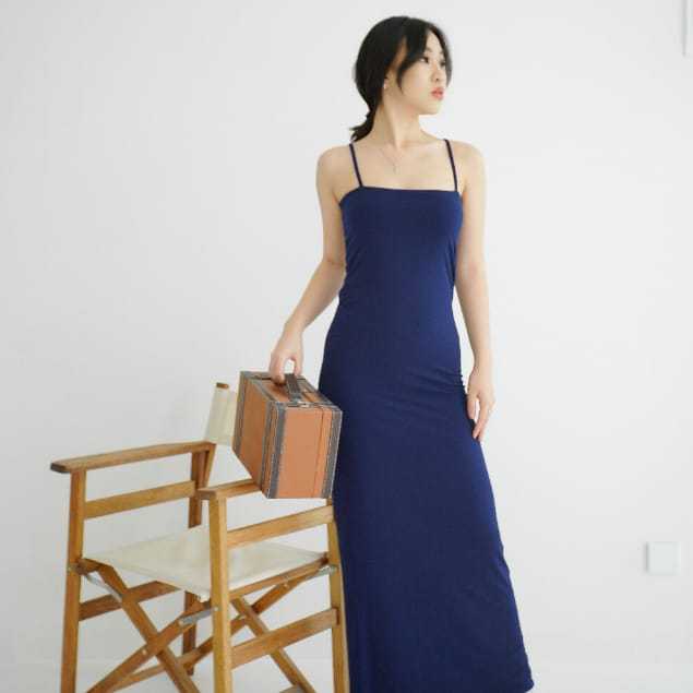 Dress Longdress Tanktop Panjang Tali Kecil Spaghetti Street Korean Style Party