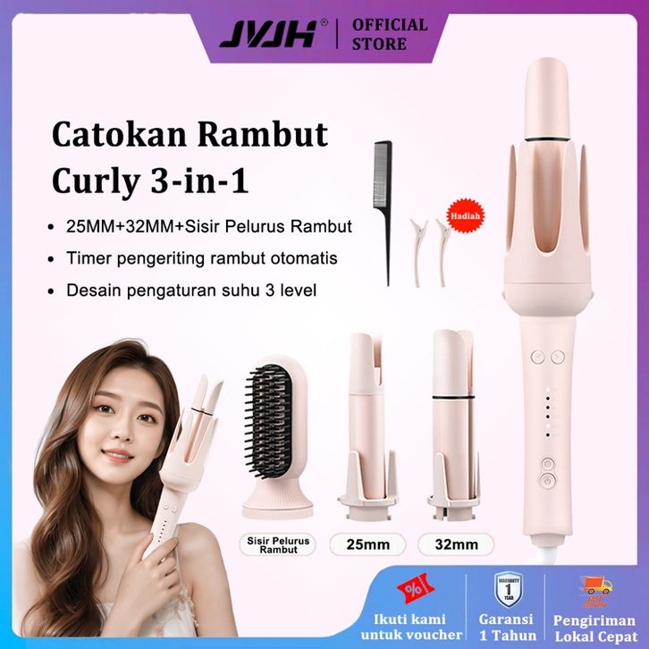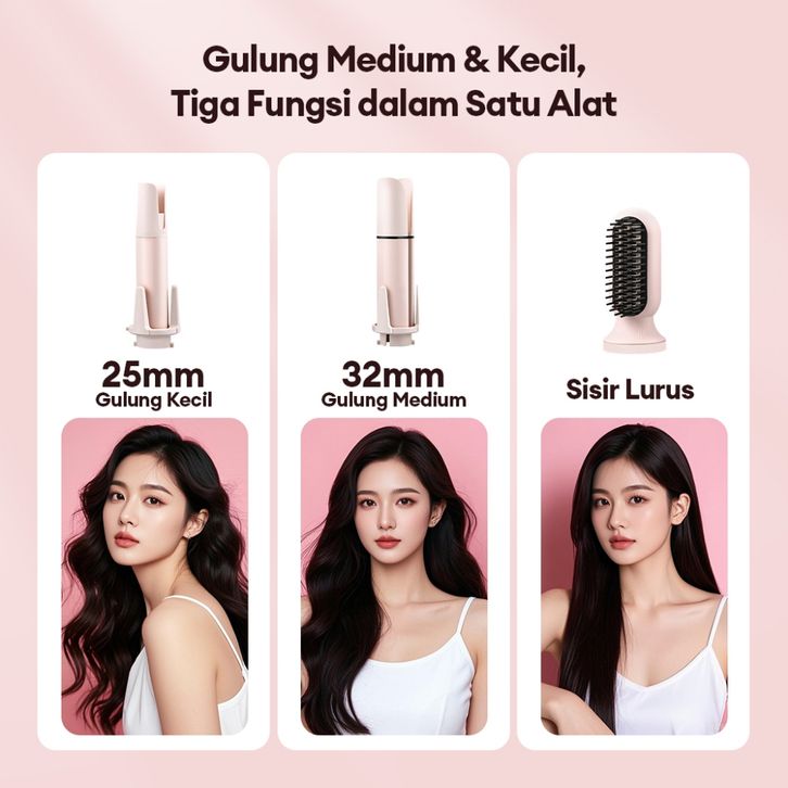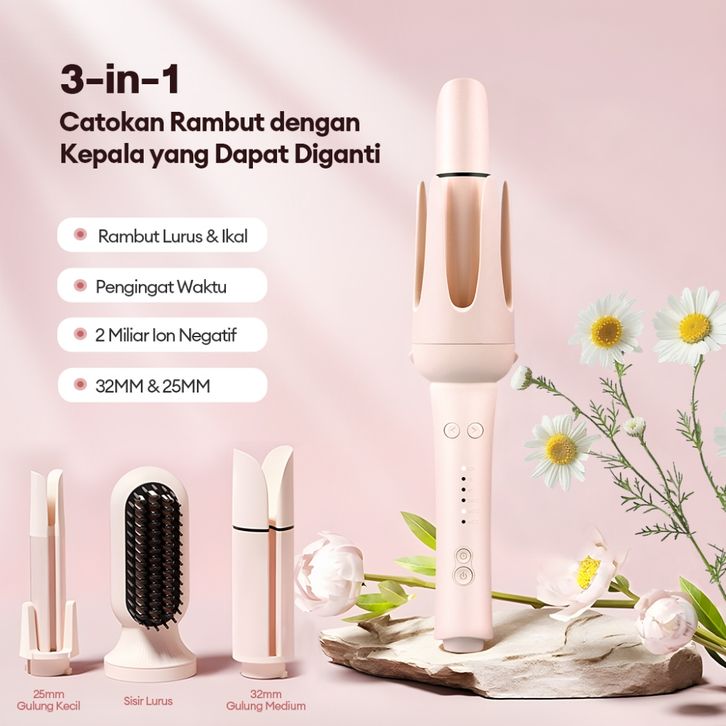 Catokan Rambut Curly Otomatis 3-in-1 Multifungsi Sisir Pelurus Rambut Pengganti Catok Curly Keriting