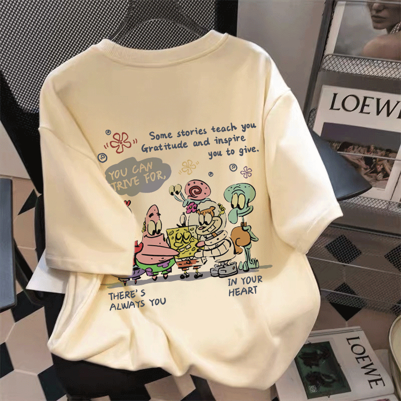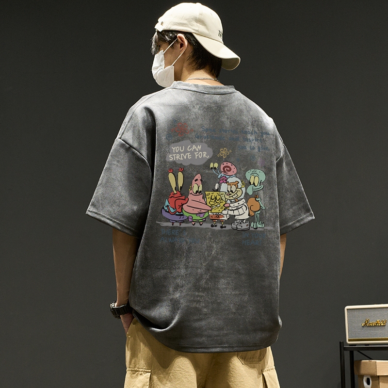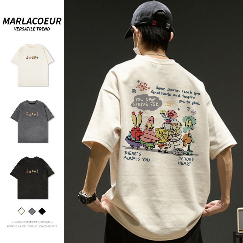 MARLACOEUR T-SHIRT ATASAN BAJU KAOS OVERSIZE PRIA CREAM DEWASA DISTRO LENGAN PENDEK OVERSIZE KARAKTER SPONGEBOB PATTERN STREET STYLE| KAOS PRIA CREAM| TSHIRT SPONGEBOB| KAOS KARAKTER SPONGEBOB/A1220