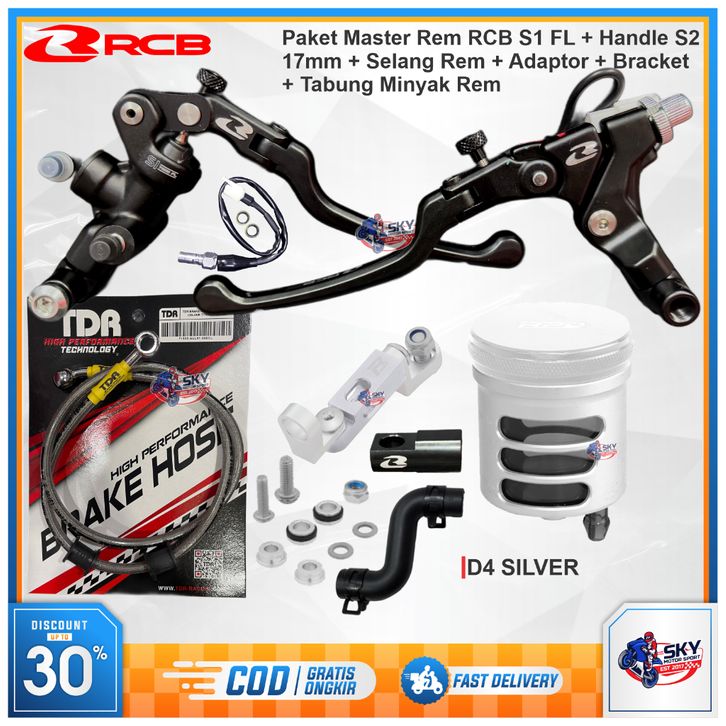 Paketan Master Rem RCB S1 FL 17mm / 14mm + Handle Kiri S2 + Selang Rem TDR + Bracket Tabung Prism + Adaptor Selang Rem