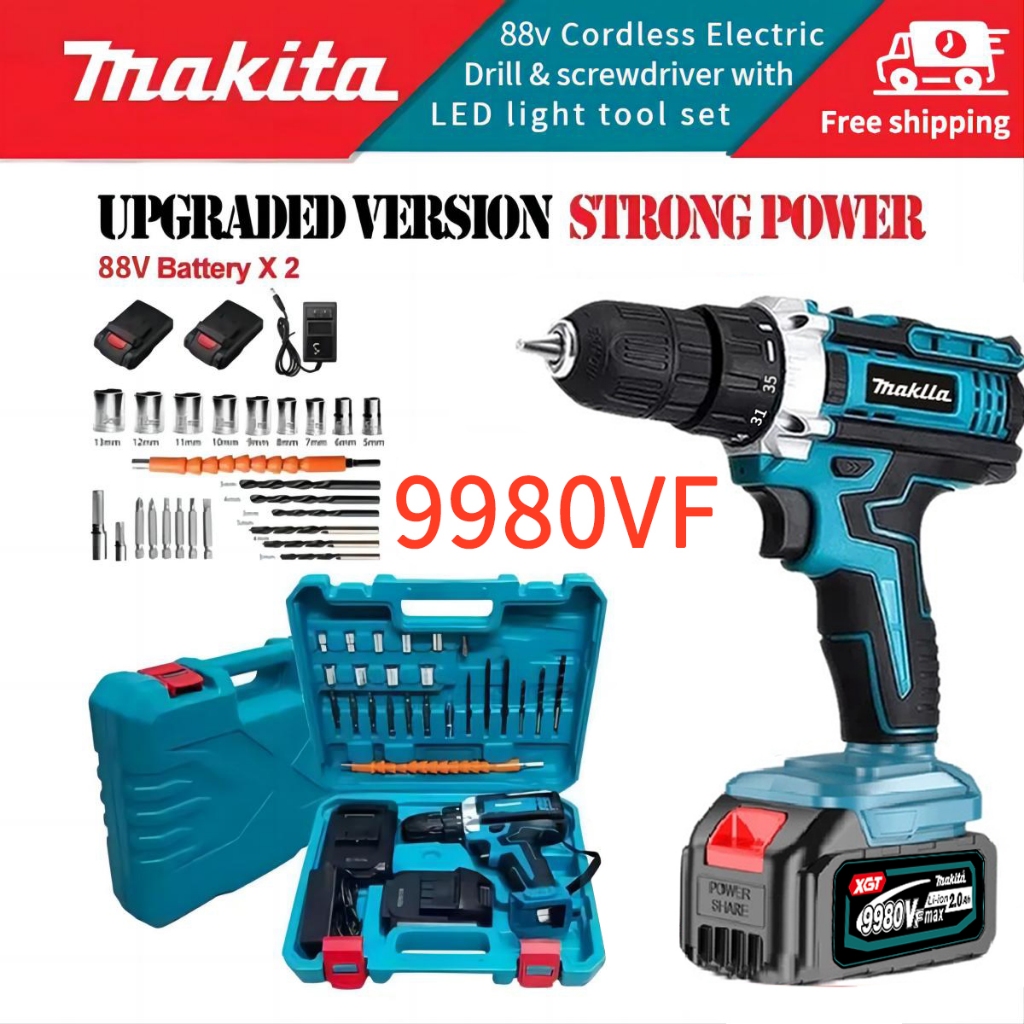 【35GIGI】MAKLTA 9980VF MESIN BOR 2 BATERAI BOR IMPACT LISTRIK BOR CORDLESS 3 MODE-BOR IMPACT OBENG 10MM BOR TEMBOK BESI KAYU BOLAK-BALIK