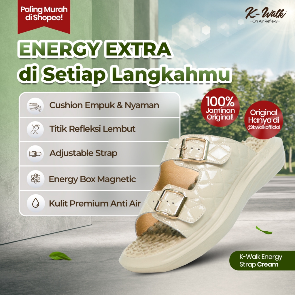 [OKI SETIANA DEWI APPROVED] K-WALK ENERGY STRAP SANDAL TERAPI KESEHATAN SANDAL REFLEKSI SANDAL REMATIK SPECIAL EDITION CREAM
