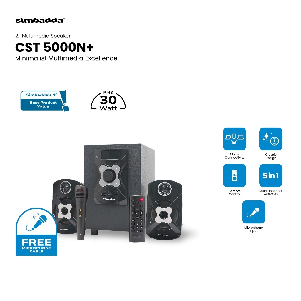 Simbadda CST 5000N+ Speaker Bluetooth 2.1 – Subwoofer Bass V3, Remote, FM Radio, USB, Mic Karaoke
