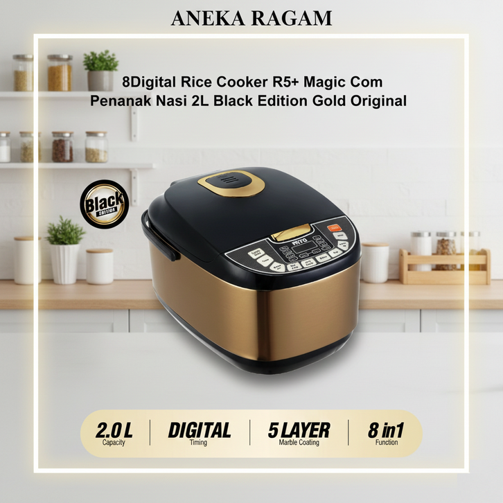 MITO Digital Rice Cooker R5+ Magic Com Penanak Nasi 2L Black Edition Gold Original