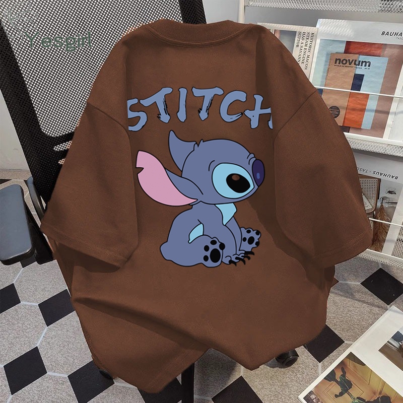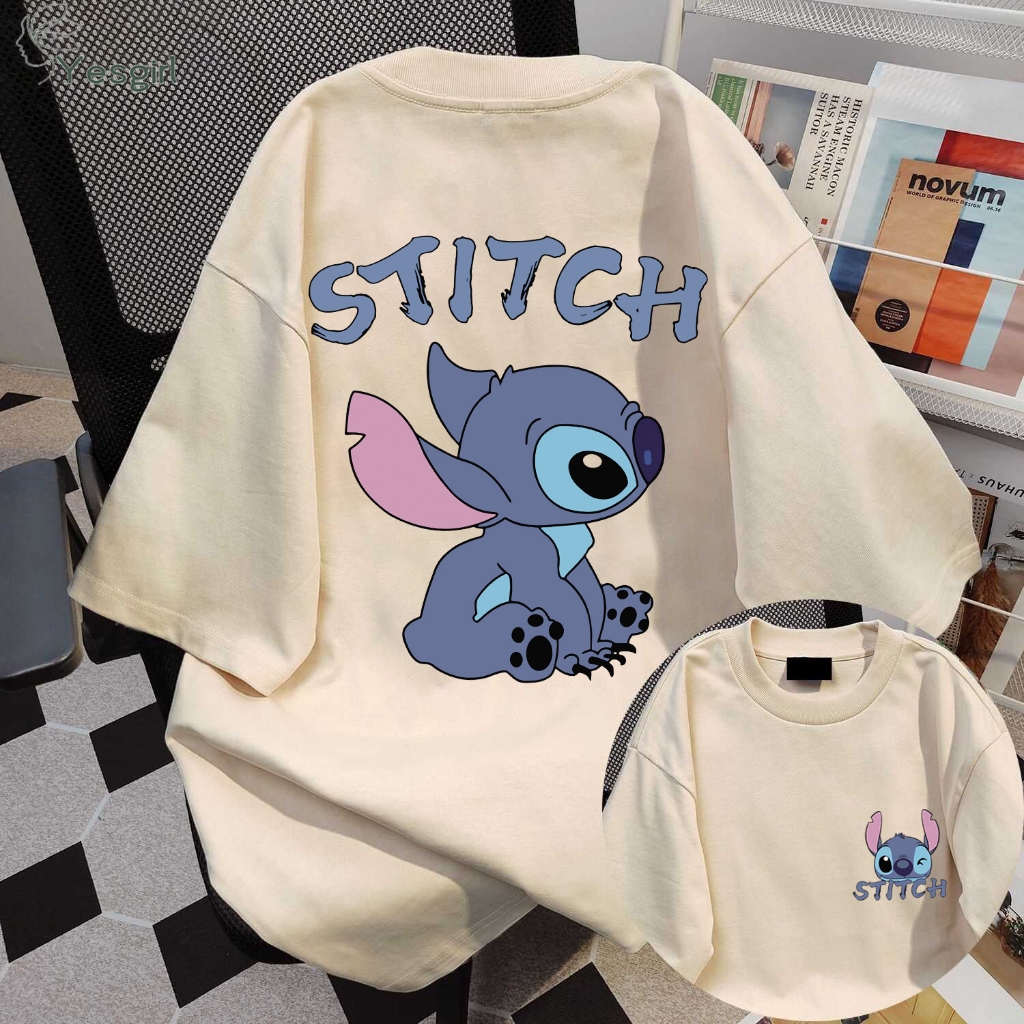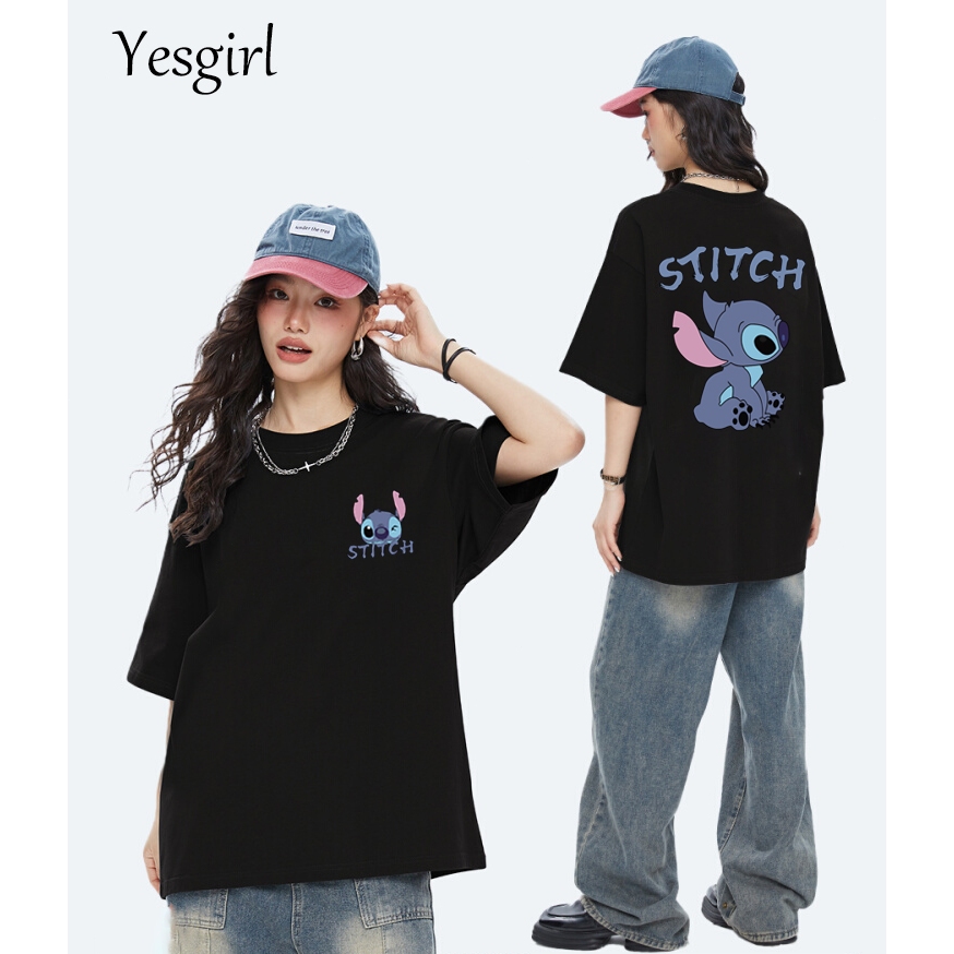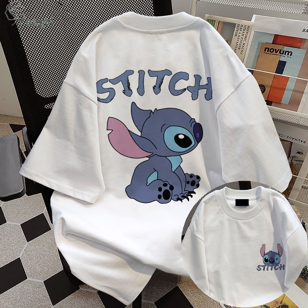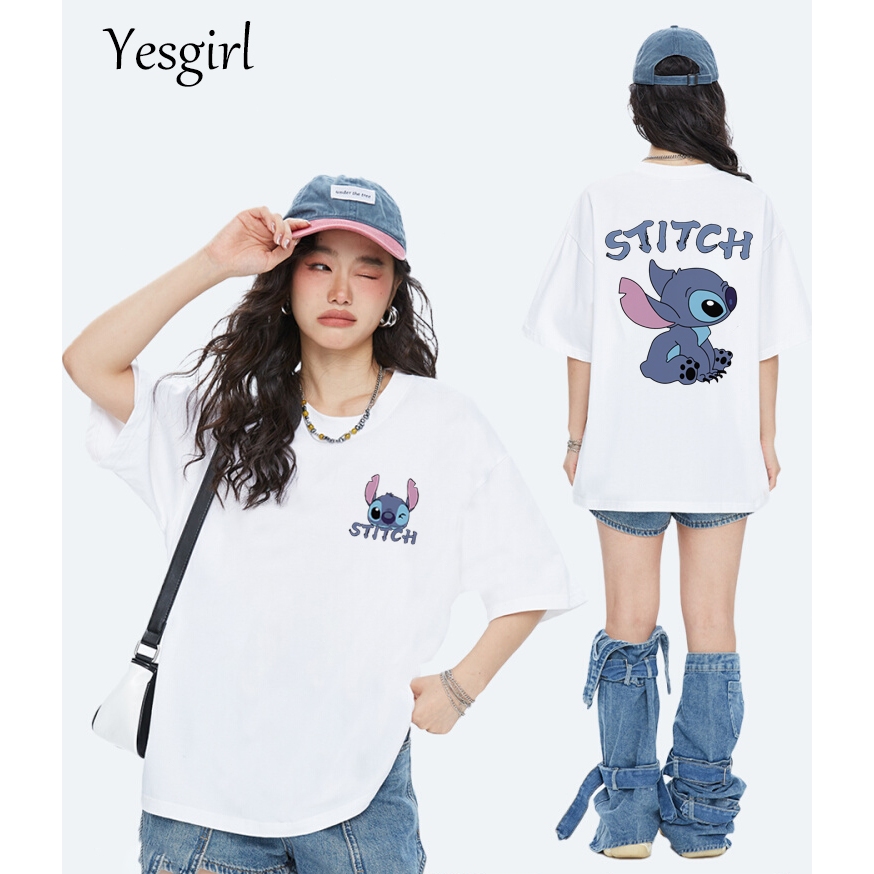 YESGIRL KOREA STYLE CARTOON STITCH PRINT KAOS KASUAL LONGGAR| KAOS OVERSIZE WANITA | FASHION KOREAN STYLE BAJU KAOS OVERSIZE| BAJU ATASAN WANITA TERBARU 100COTTON | KAOS PUTIH WANITA | 6.26
