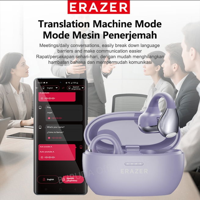 【AI Translation Earbud】Lenovo ERAZER XF39 Sports Ear Clips Terjemahan 134 Bahasa TWS Bluetooth 6.0 Subang ANC Noise Canc