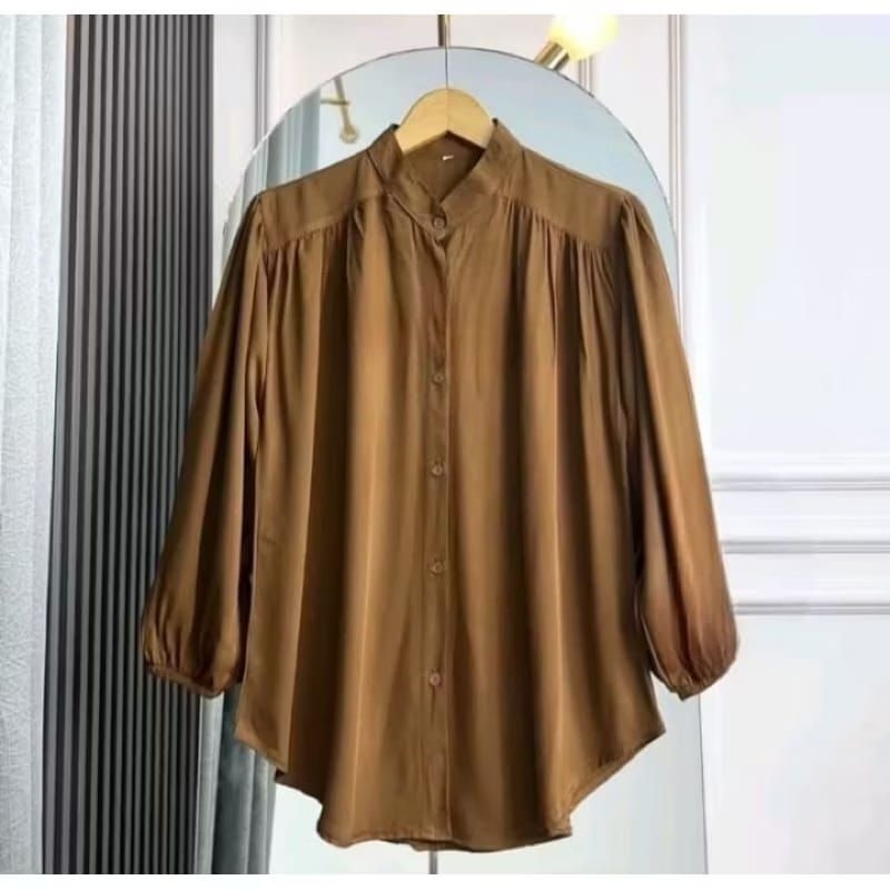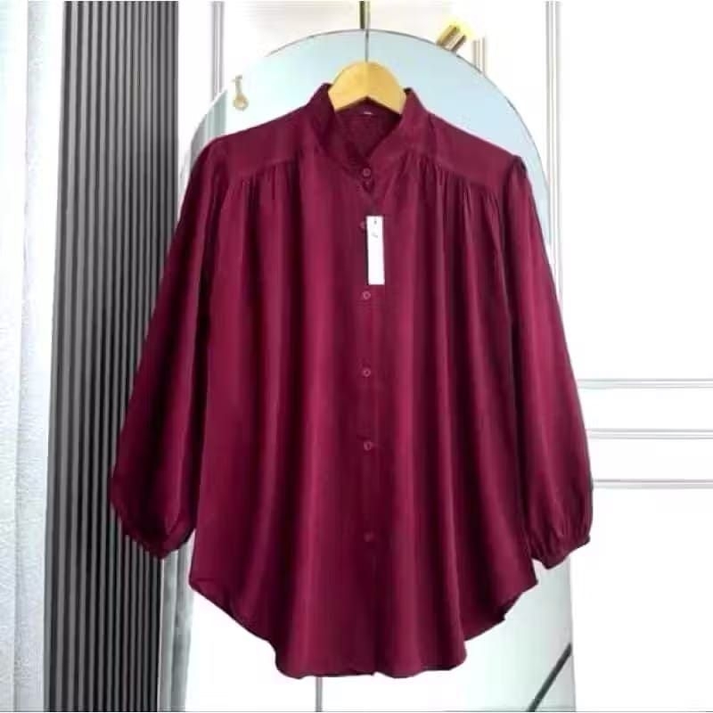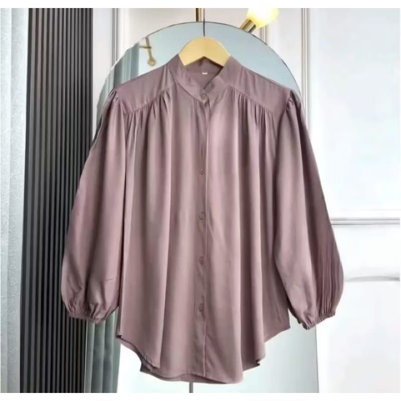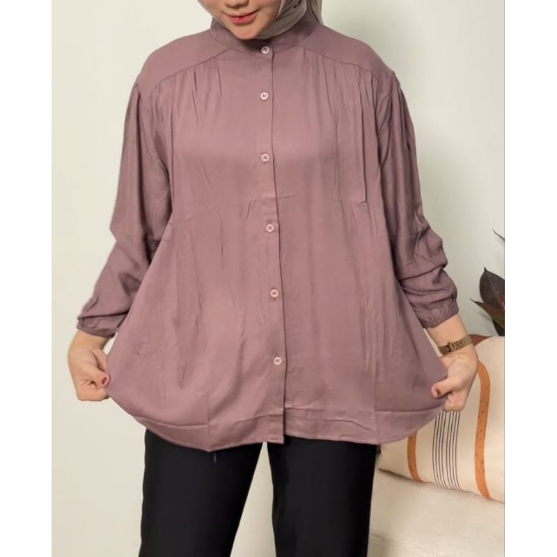 AMENA KEMEJA WANITA OVERSIZE KEKINIAN BAHAN RAYON TWILL POLOS PREMIUM LENGAN PANJANG