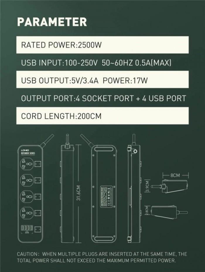 FLASH SALE LDNIO SC4408 POWER STRIP WITH 4 UNIVERSAL PLUG AND 4 USB PORT