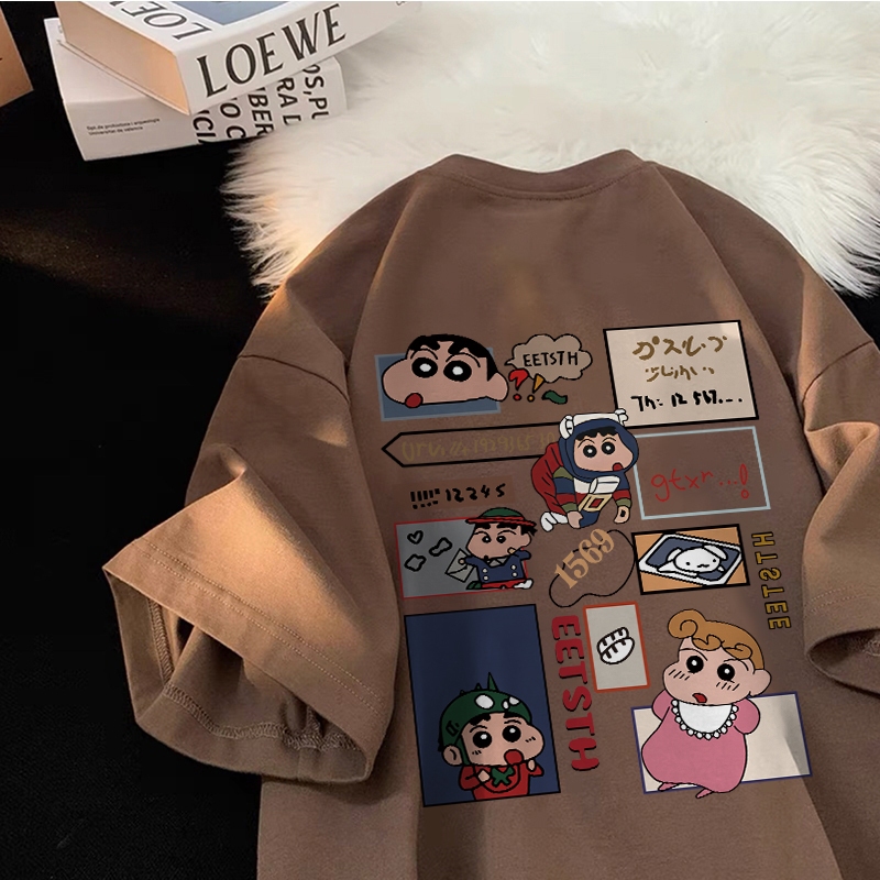 FORTEID KOREAN STYLE BAJU KAOS LUCU WANITA OVERSIZE "KRAYON SHIN-CHAN PRINTING BAJU ATASAN LENGAN PENDEK WANITA HITAM KAOS OVERSIZE TERBARU