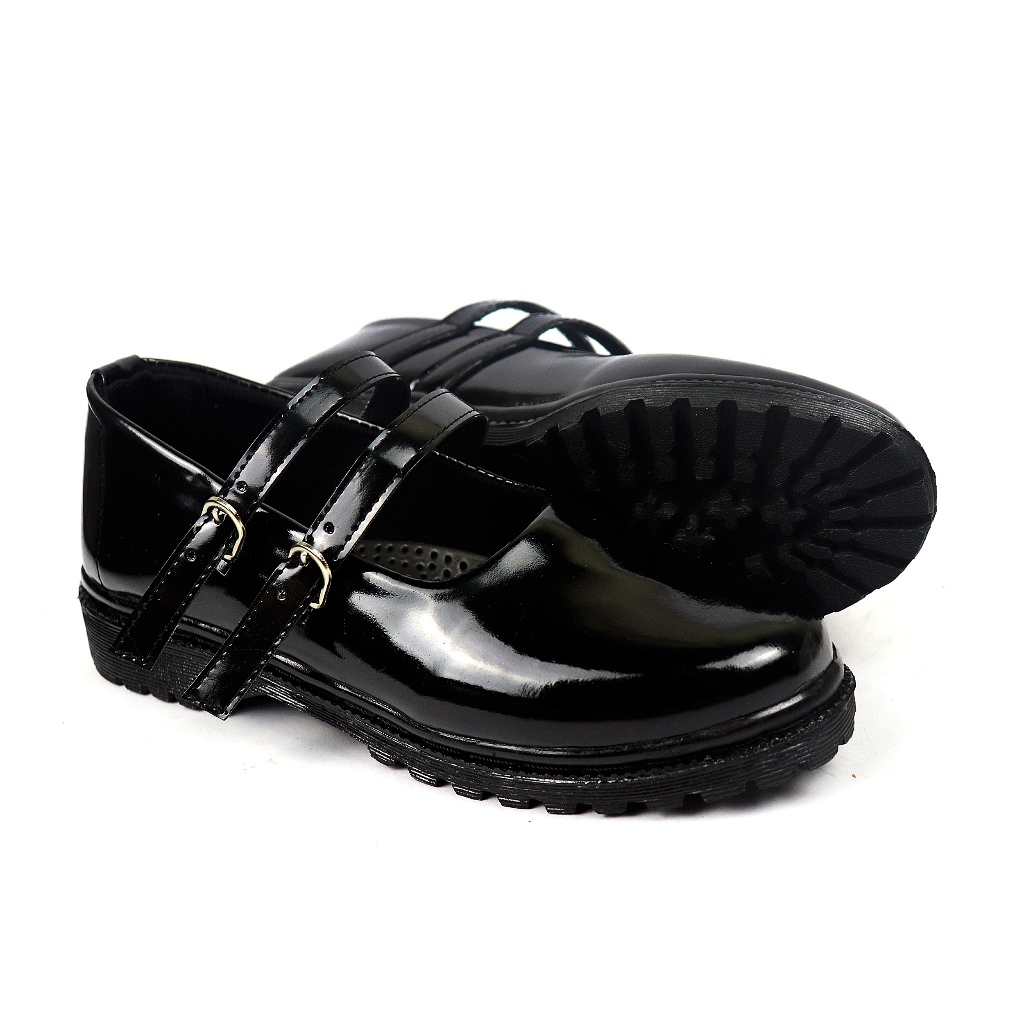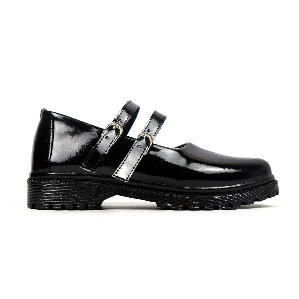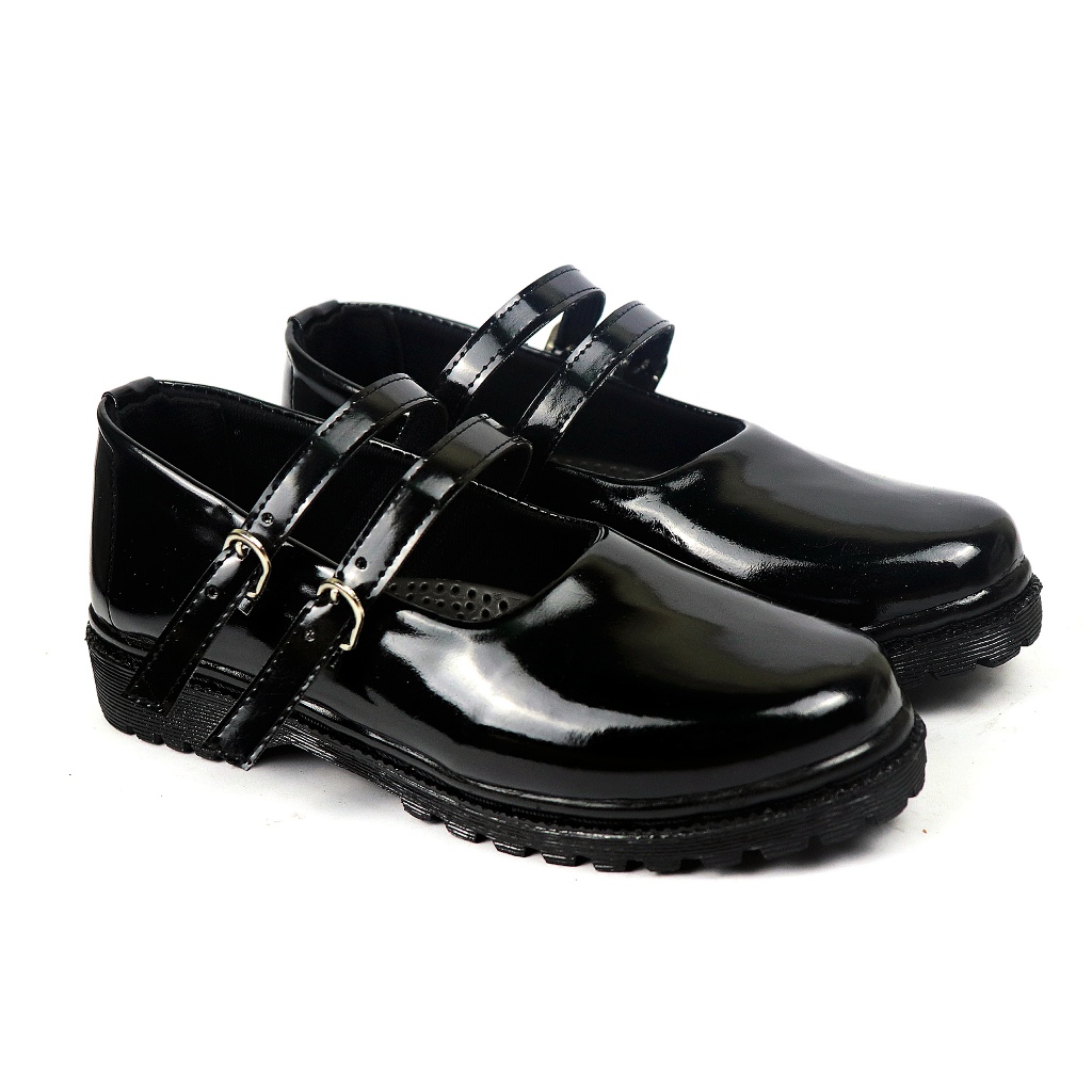 FLAZO SEPATU PANTOFEL WANITA KANTOR PERAWAT SEPATU PASKIBRA HITAM GLOSSY 2 TALI