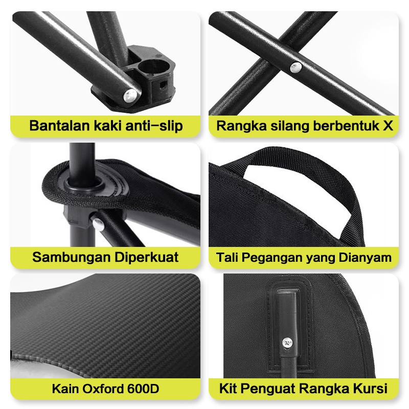 FLAGO SPORT KURSI LIPAT OUTDOOR KURSI CAMPING BULAT BALUTANNYA LEBIH KUAT DAN LEBAR 65CM