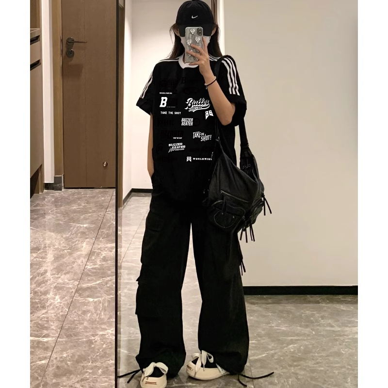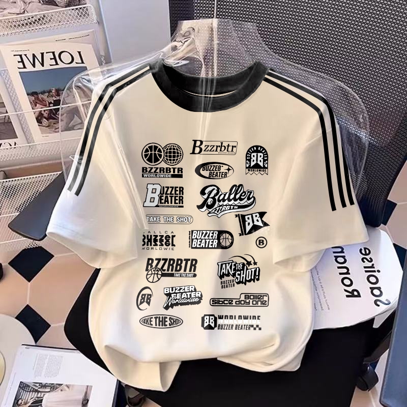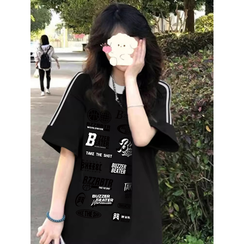 XZHAINV KAOS PENDEK SANTAI DENGAN POLA CETAK HURUF UNTUK WANITA/PAKAIAN WANITA LENGAN PENDEK PUTIH GAYA MODERN /ATASAN KATUN TIGA GARIS KONTRAS VERSI KOREA