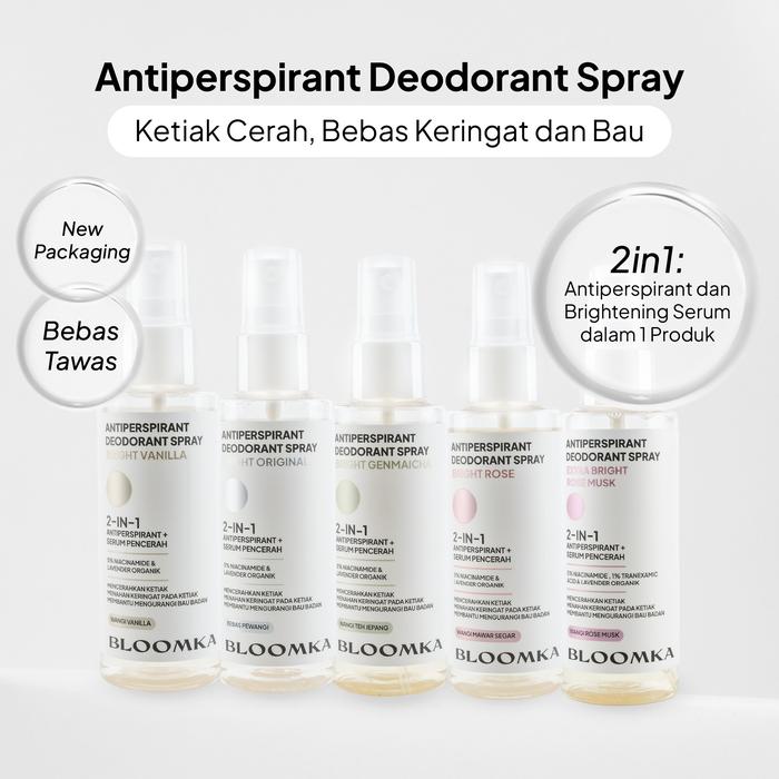 Bloomka Anti-Perspirant Deodorant Spray (Anti Keringat Anti Bau Mencerahkan Ketiak Bebas Tawas) - Bright Rose