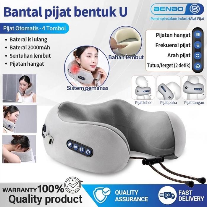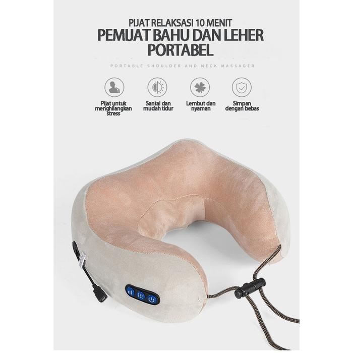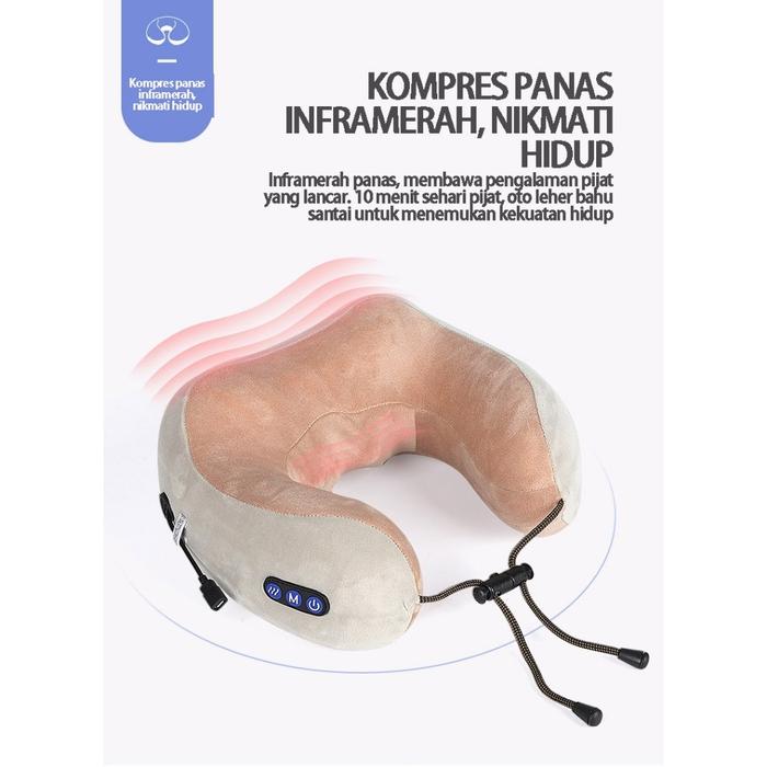 PROMO TERBATAS BANTAL PIJAT LEHER BENTUK U MASSAGE NECK ALAT PIJAT TERAPI PEGAL ELEKTRIK PORTABLE MERAH MUDA ABUABU