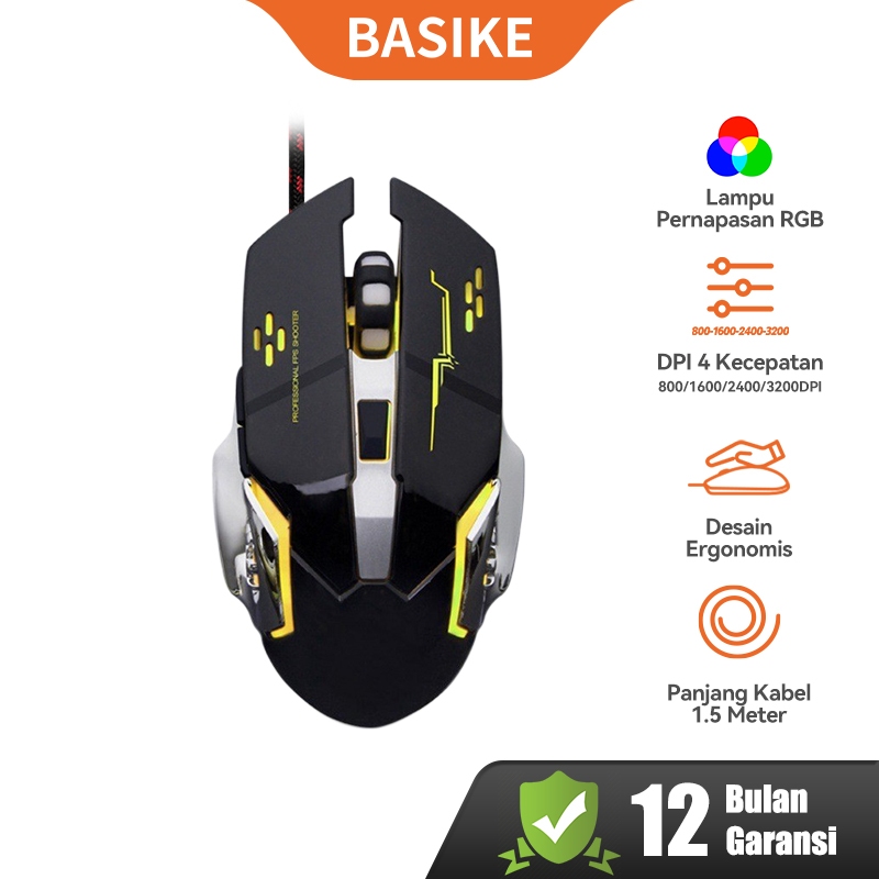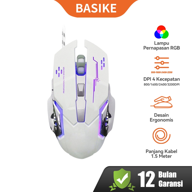 [Mall] BASIKE Mouse Gaming RGB Wired USB 6 Tombol 1200-1600 DPI Desain Ergonomis Presisi Official Store