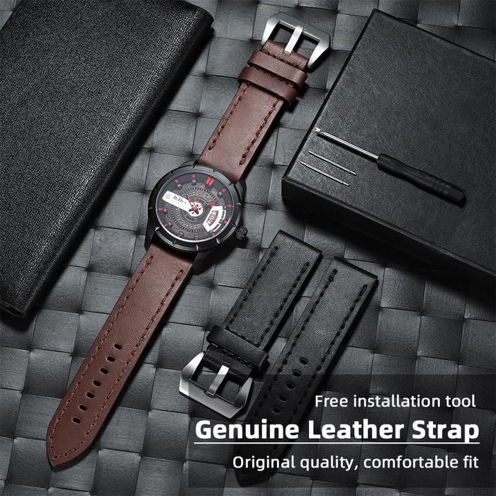FLASH SALE BIDEN PRIA TALI KULIT ASLI JAM TANGAN LEATHER STRAP 22MM24MM HITAM 22MM