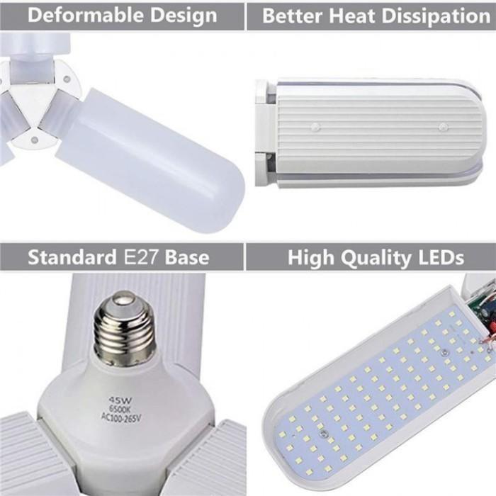 FLASH SALE FAN BLADE FOLDABLE LED BULB 45W E27 6500K 1800 LUMENS WHITE 36W PUTIH