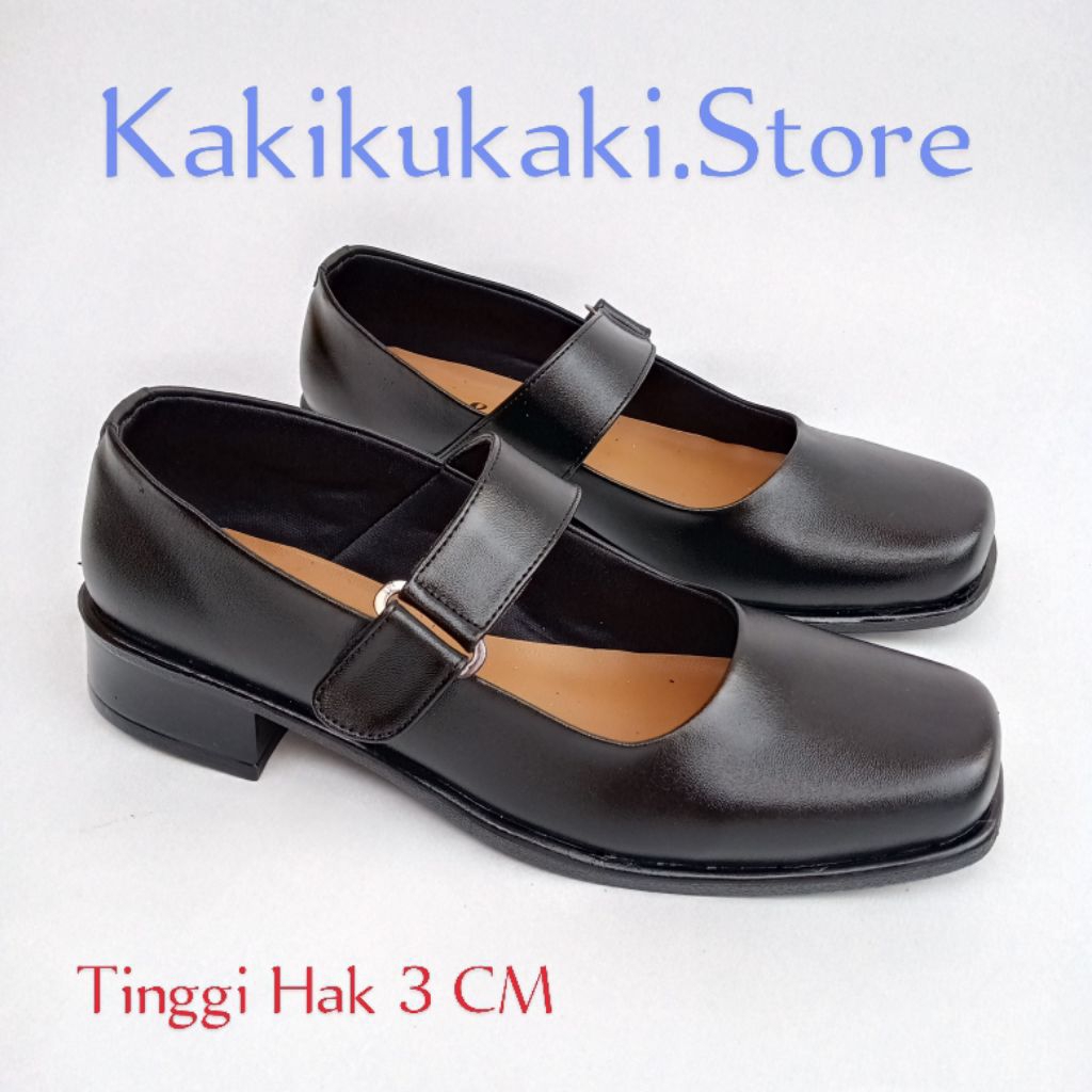 SEPATU PASKIBRAKA WANITA ORIGINAL 100 HAK 3CM WARNA HITAM