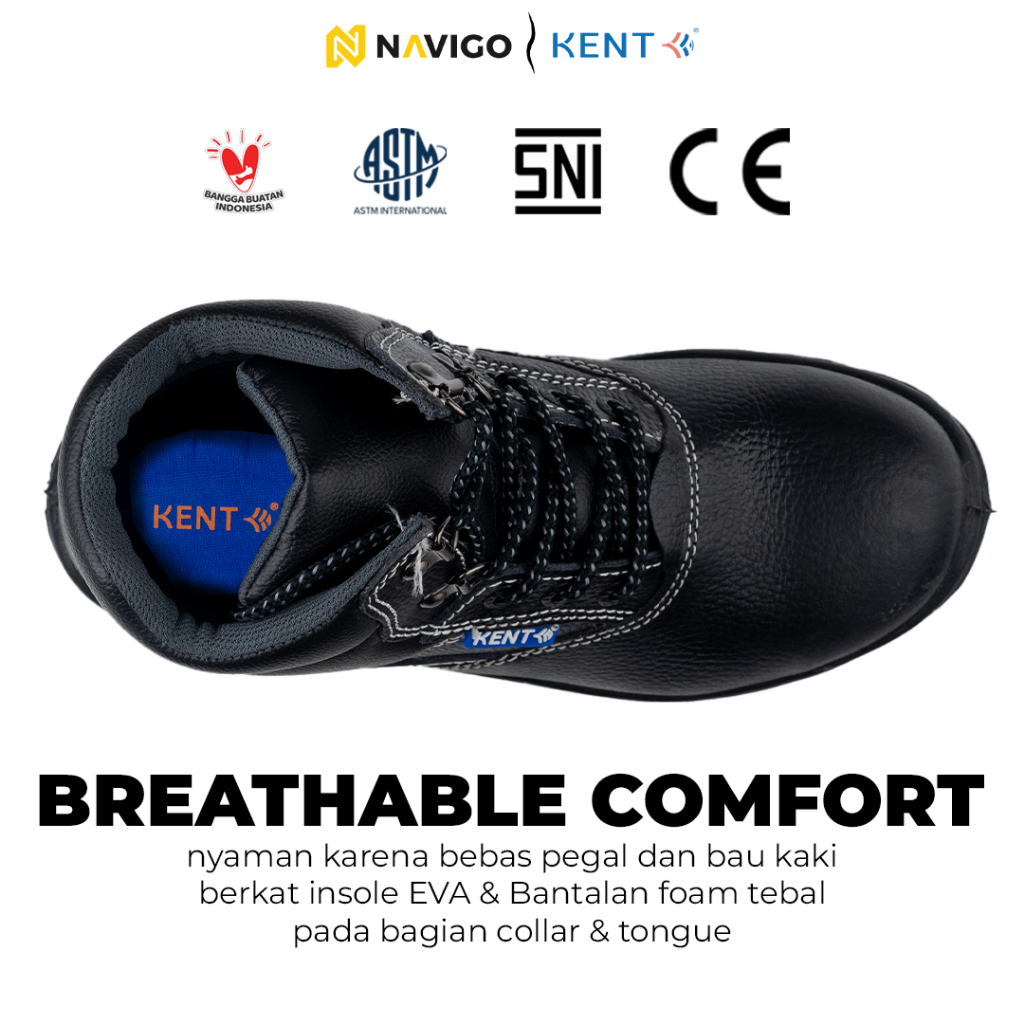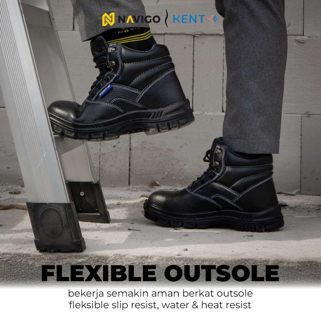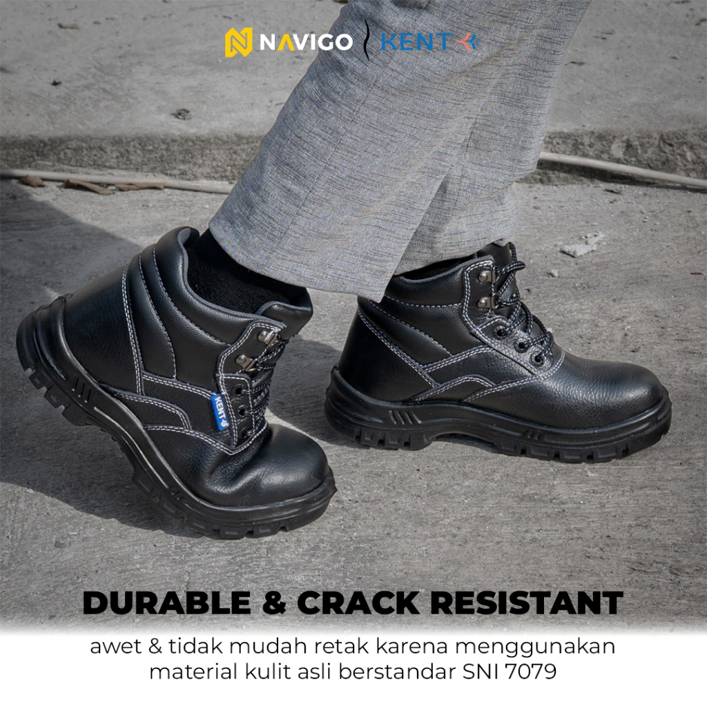 NAVIGO X KENT Sepatu Safety Pria Wanita ANDALAS 78355 - Standar SNI ASTM CE Kulit Asli Ujung Besi Slip Resist
