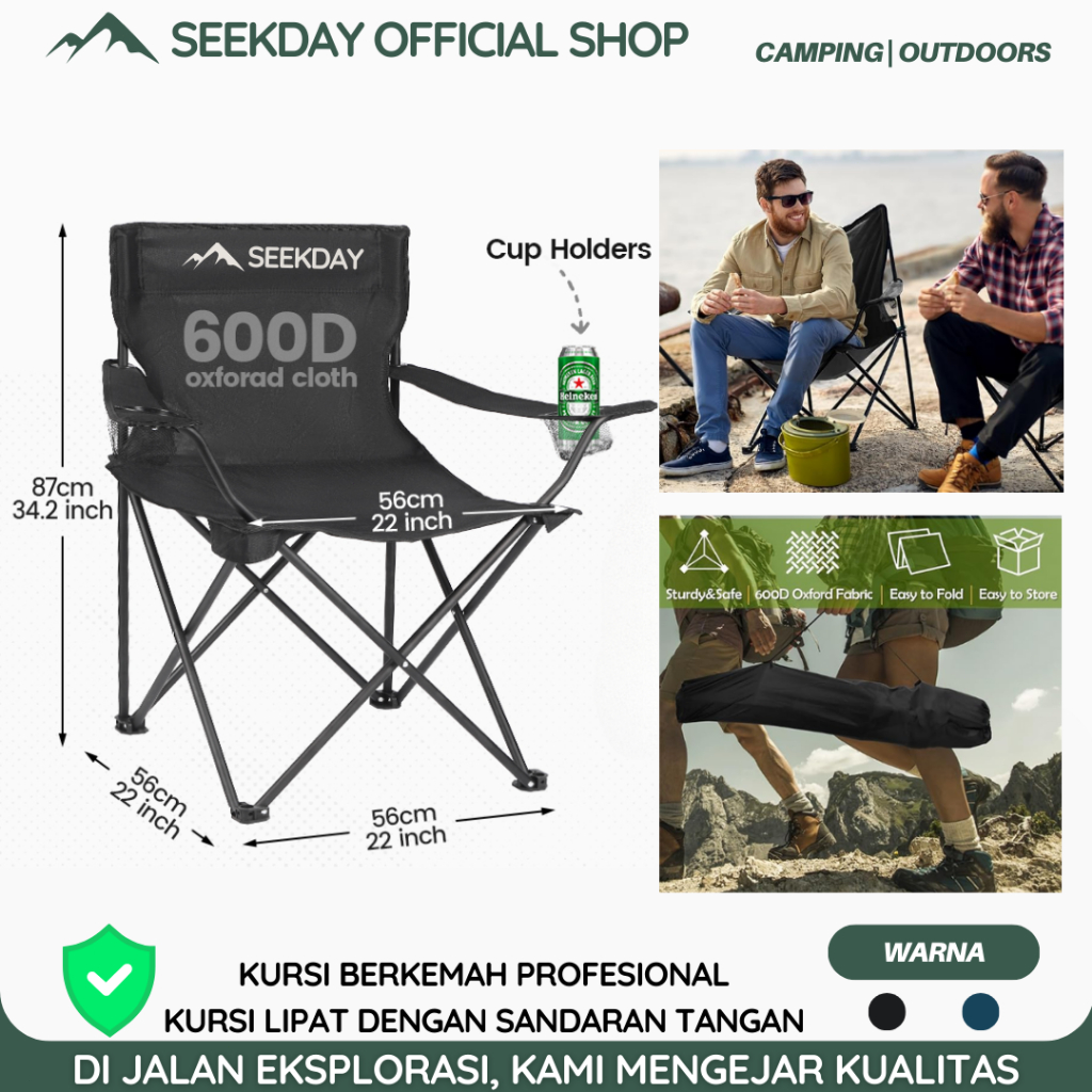 SEEKDAY KURSI LIPAT OUTDOOR SANDARAN TANGAN LEBIH LEBAR BEBAN 150KG KURSI LIPAT CAMPING GUNUNG COCOK UNTUK MEDAN KASAR TAHAN SOBEK