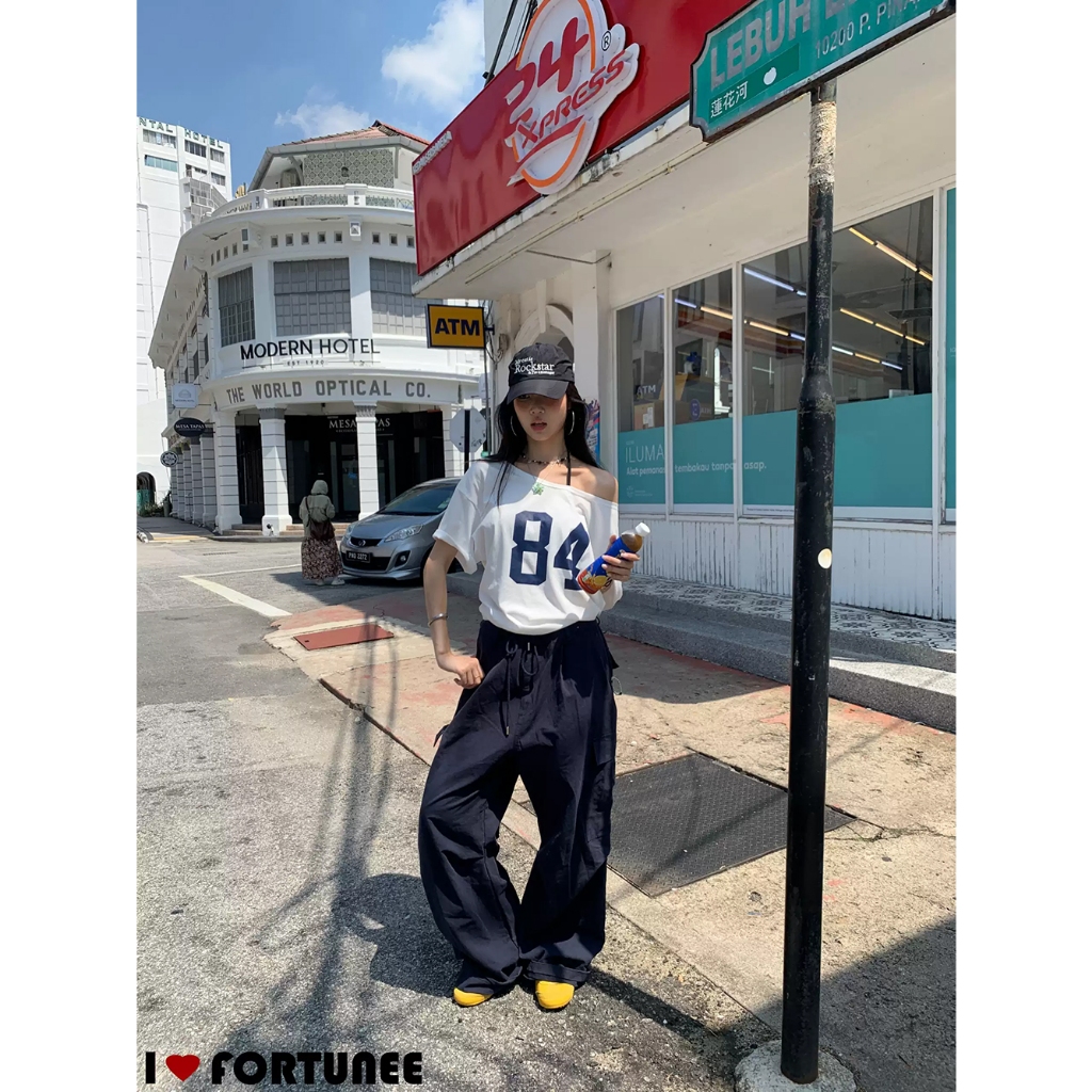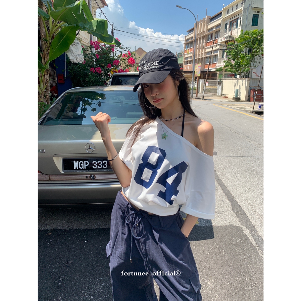 SOSOJEANS 84 TSHIRT Y2K ASYMMETRICAL OFFSHOULDER T0P AHS STREETWEAR STOCKHOLM VINTAGE RETRO AESTHETIC KAOS OVERSIZE WANITA