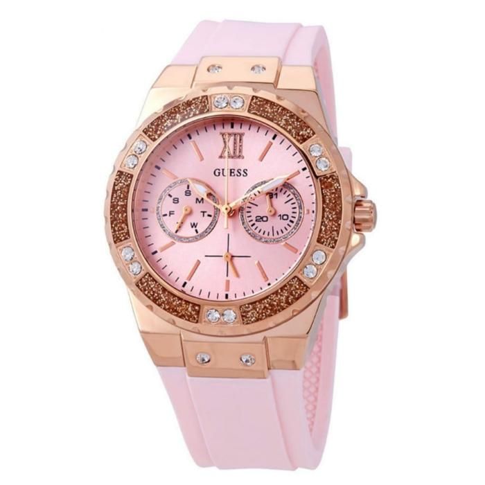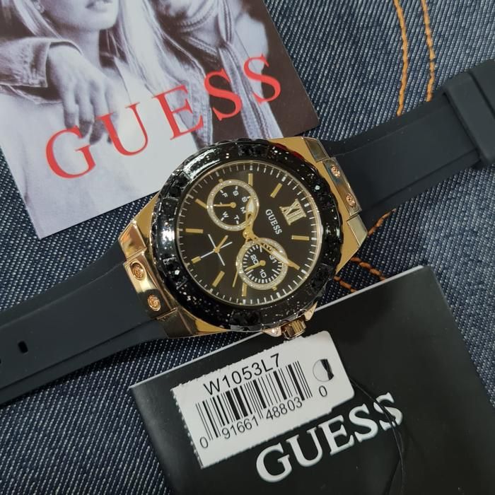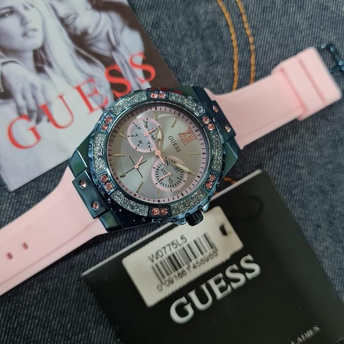 JAM TANGAN WANITA GUESS ORIGINAL W1053L1 STRAP RUBBER PINK BLUE ANALOG WATCH 38MM ANTI AIR FREE BOX TERMURAH