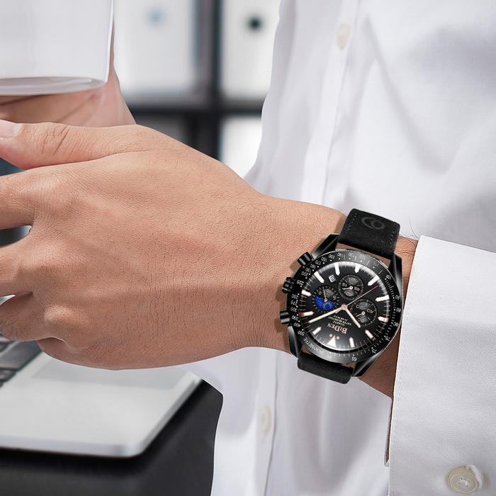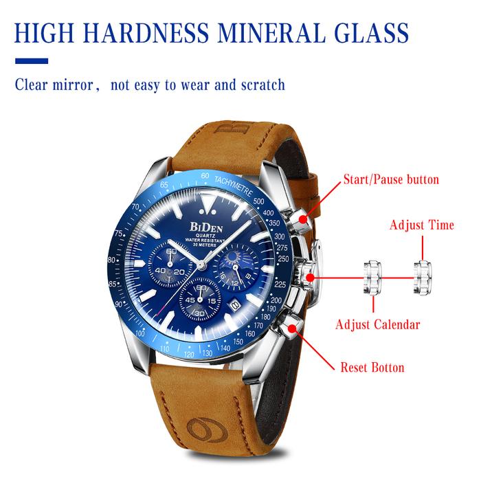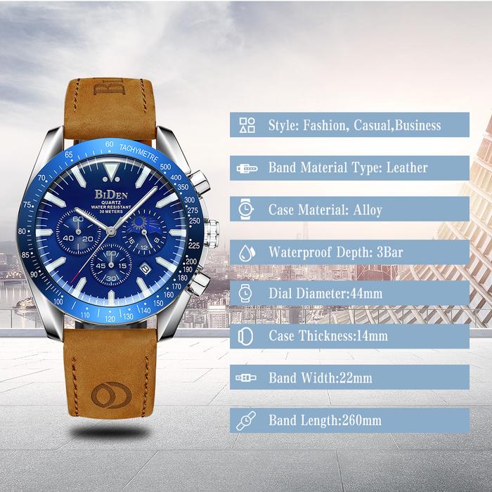 FLASH SALE BIDEN JAM TANGAN PRIA MULTIFUNGSI BISNIS MEWAH TALI KULIT ANTI AIR JAM TANGAN COWOK COKELAT