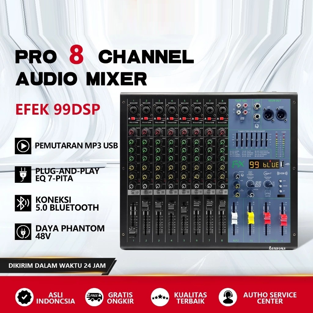 LUXSONA Mixer audio 8 saluran profesional/mixer 99DSP/mixer audio 8 channel asli/konsol papan suara admixer DJ/dengan US