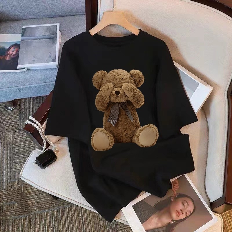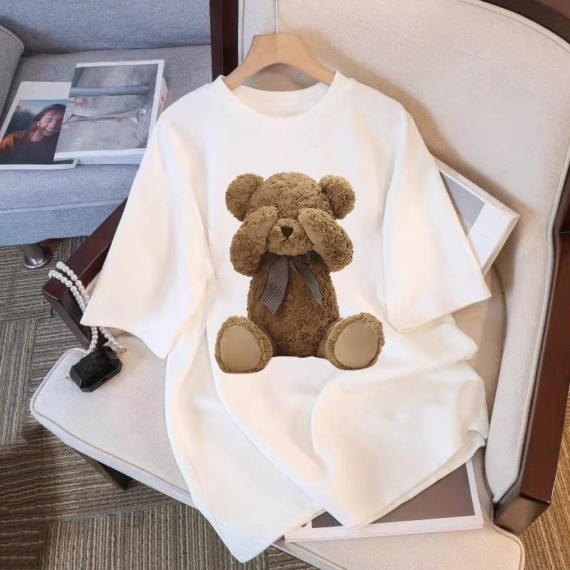 JESSICA KOREAN TSHIRT LENGAN PENDEK KAOS OVERSIZE CETAKAN (BEAR) KOREAN STYLE BAHAN 100 COTTON