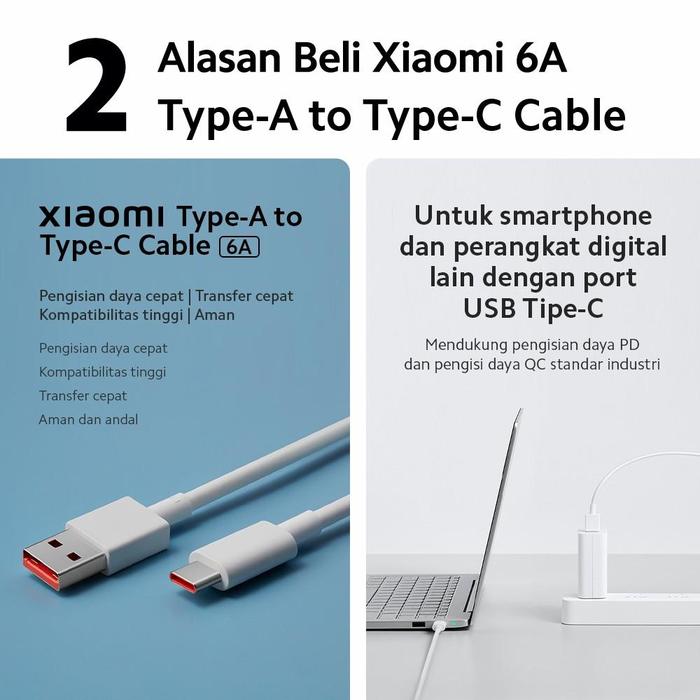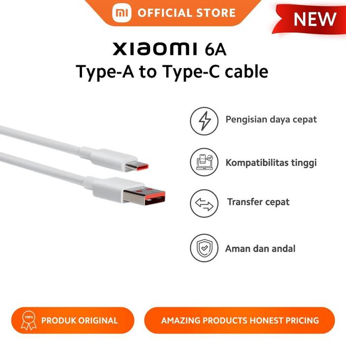 PROMO TERBATAS XIAOMI OFFICIAL XIAOMI KABEL TYPEA TO TYPEC 6A FAST CHARGING