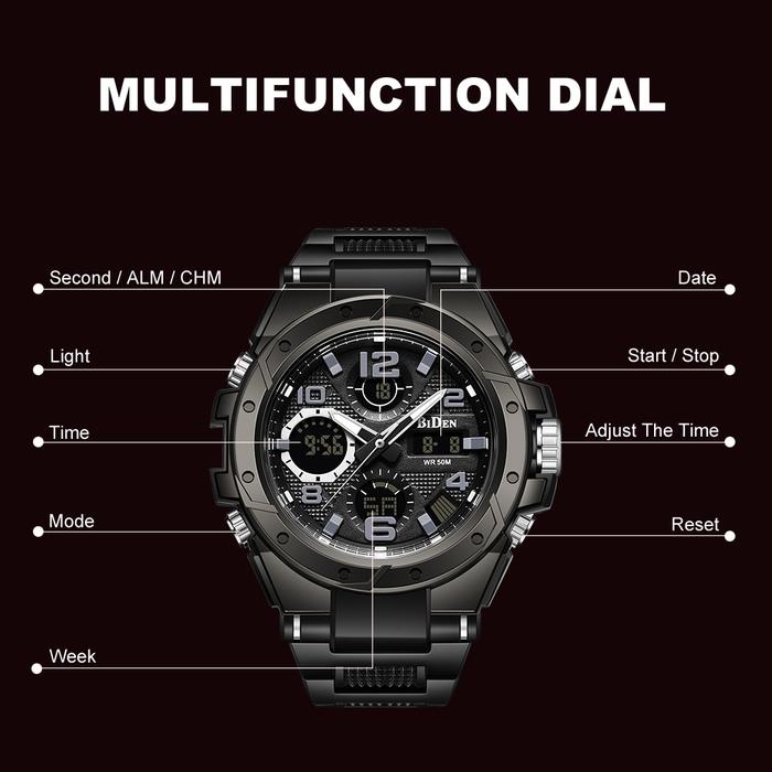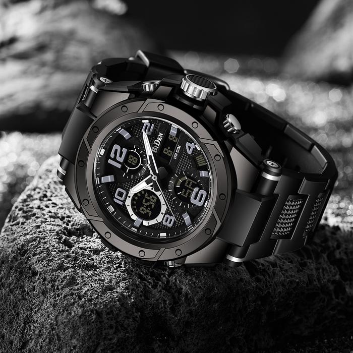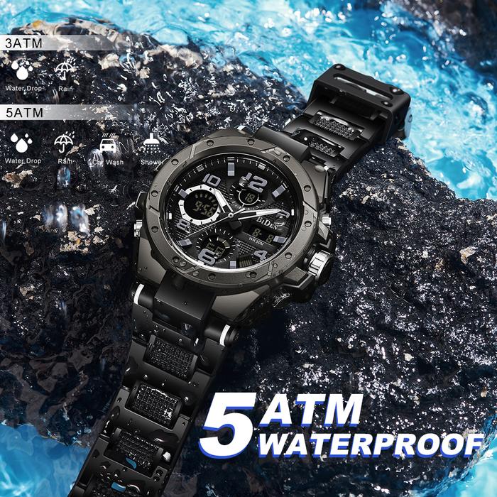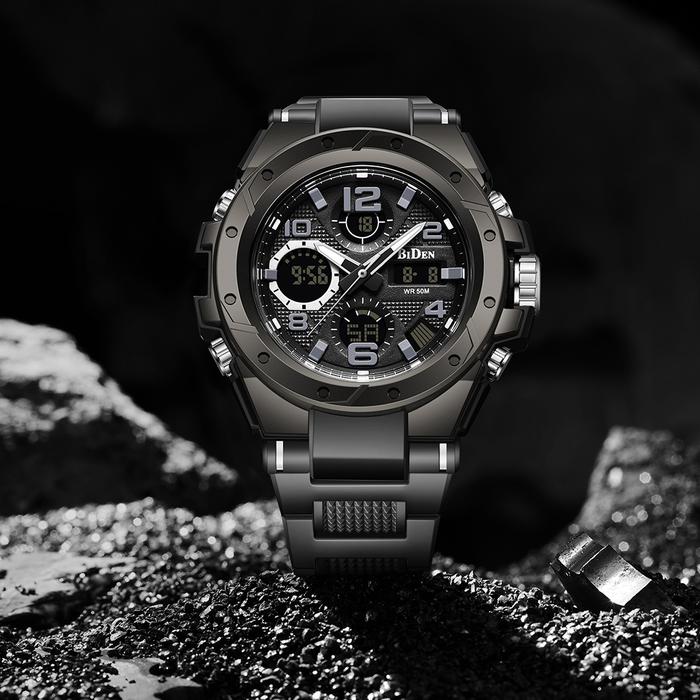 FLASH SALE BIDEN JAM TANGAN PRIA MILITER DIGITAL&ANALOG OLAHRAGA TALI SILIKON ALL BLACK