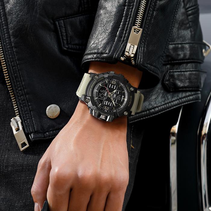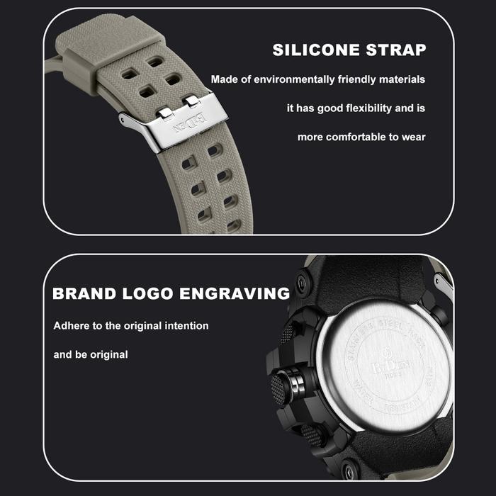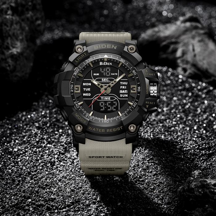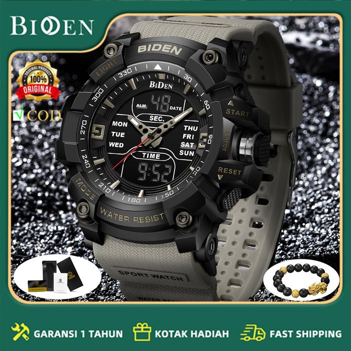 FLASH SALE BIDEN JAM TANGAN PRIA MILITER TALI SILIKON DIGITAL&ANALOG DISPLAY JAM TANGAN COWOK KHAKIBLACK