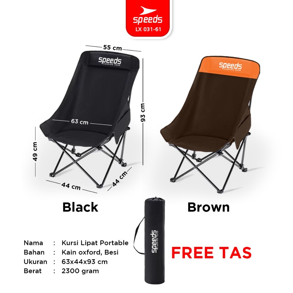 SPEEDS KURSI LIPAT PORTABLE CAMPING HIKING OUTDOOR FOLDABLE CHAIR BAHAN KAIN OXFORD 031-61