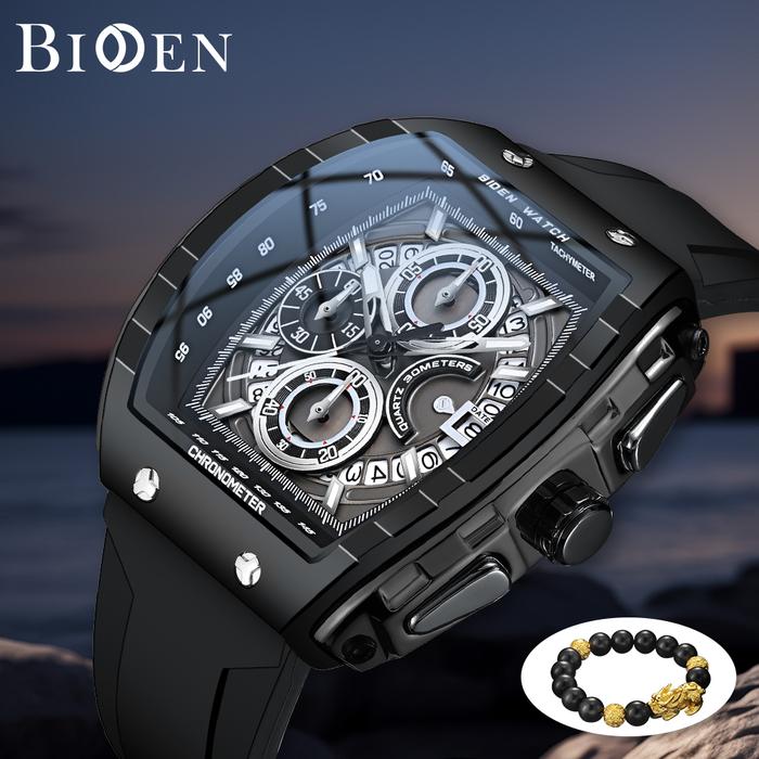 FLASH SALE BIDEN JAM TANGAN PRIA OLAHRAGA KALENDAR BERCAHAYA ANTI AIR TALI SILIKON JAM TANGAN COWOK ORIGINAL ALLBLACK