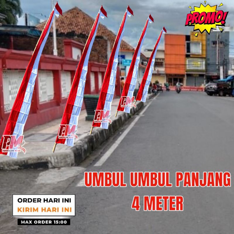 ISI 20 PCS BENDERA UMBUL-UMBUL LAYUR PANJANG 4 METER MERAH PUTIH