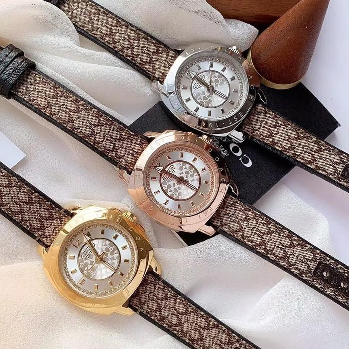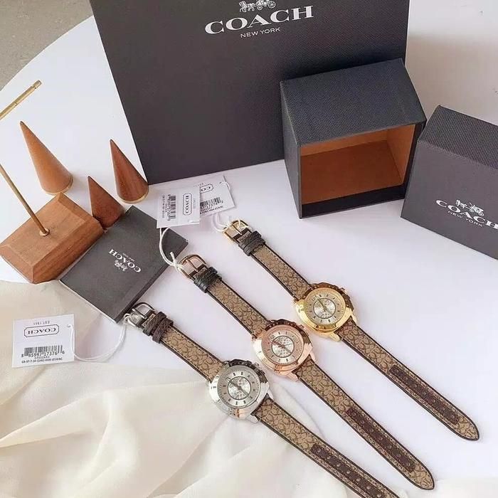 JAM TANGAN WANITA COACH GRADE ORIGINAL LEATHER STRAP DIAL ROSEGOLD PINK ANALOG WATCH TALI KULIT FREE BOX TERMURAH