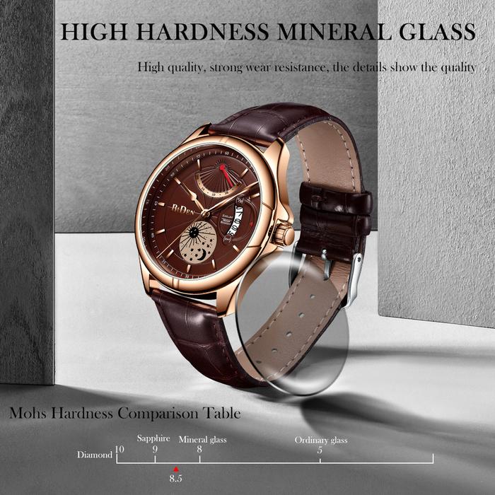 FLASH SALE BIDEN JAM TANGAN PRIA TALI KULIT TAMPILAN TANGGAL CHRONOGRAPH BISNIS BLACK BROWN