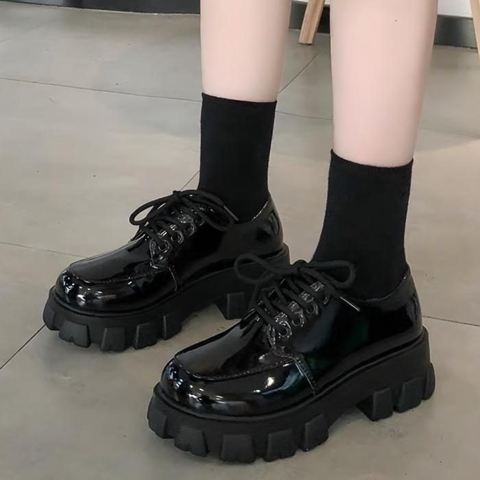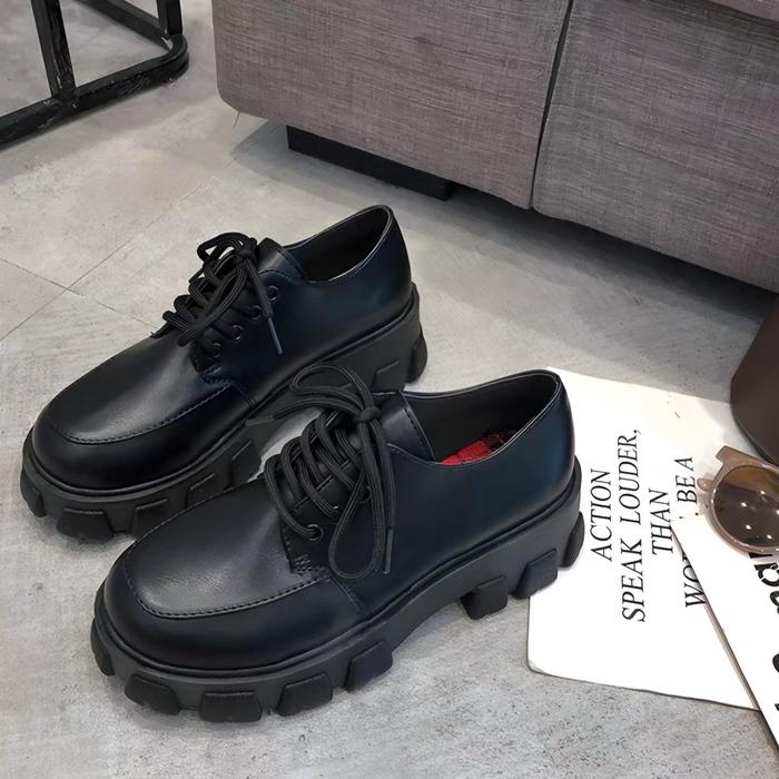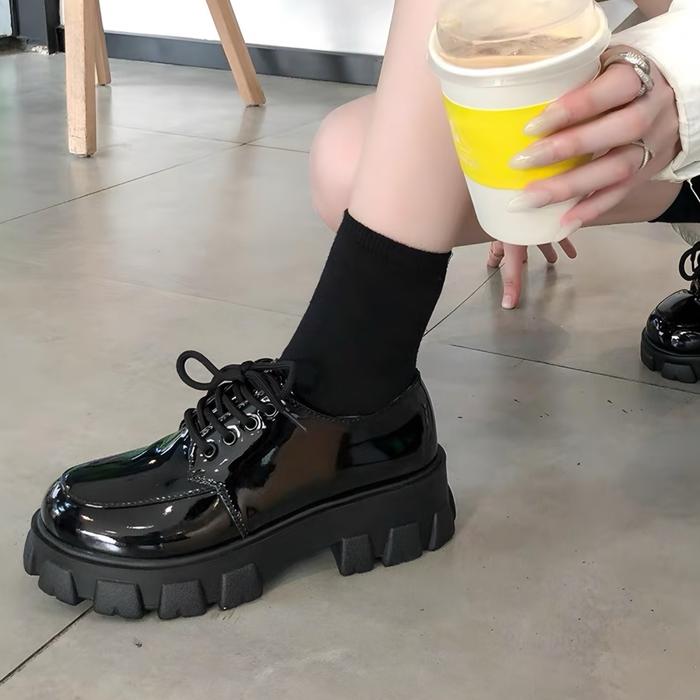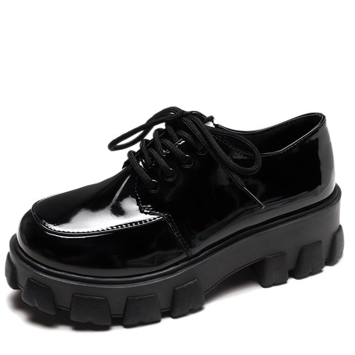 Sepatu Oxford Wanita Terbaru 5 Cm Tali Hitam Glosy Ootd Sekolah Fashion Korea Kekinian Flat Shoes Docmart Ootd Cewek Rem