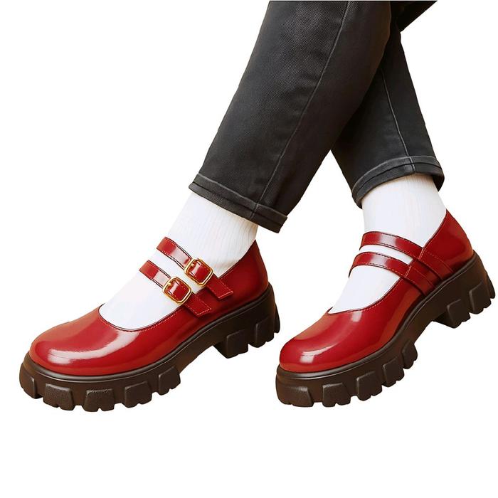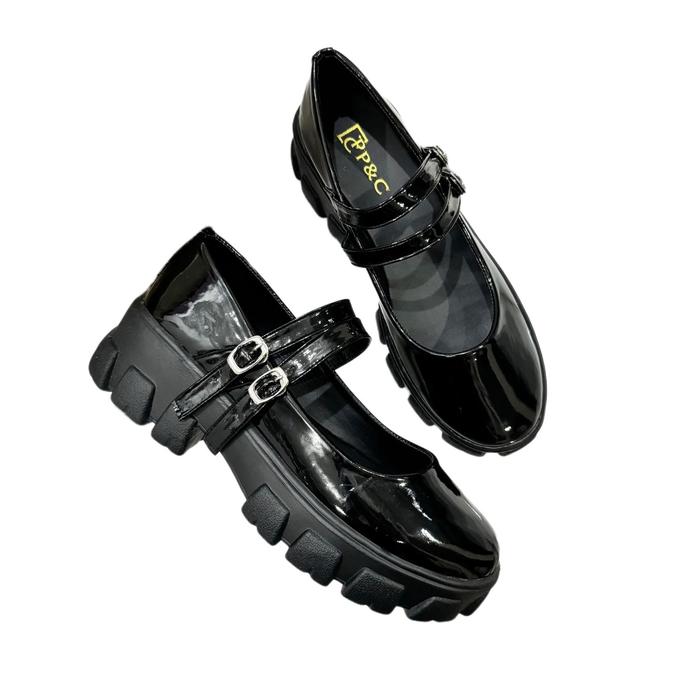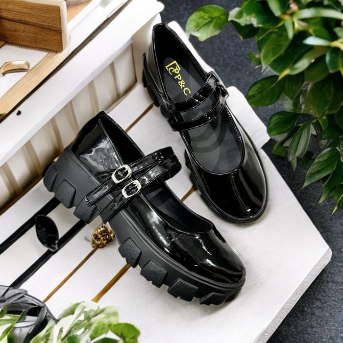 Sepatu Oxford Wanita Hitam Pricy Double Gesper Hak Datar 5 Cm Flat Shoes Docmart Black Cewek Ootd Kekinian Premium Quali