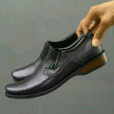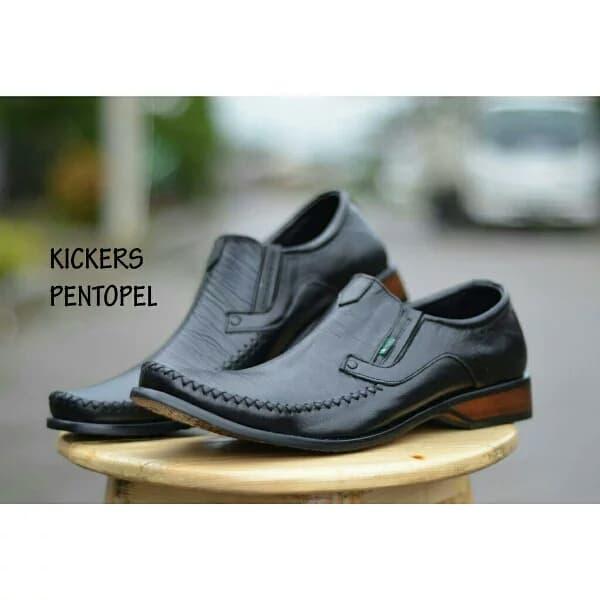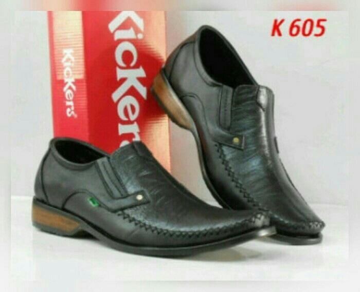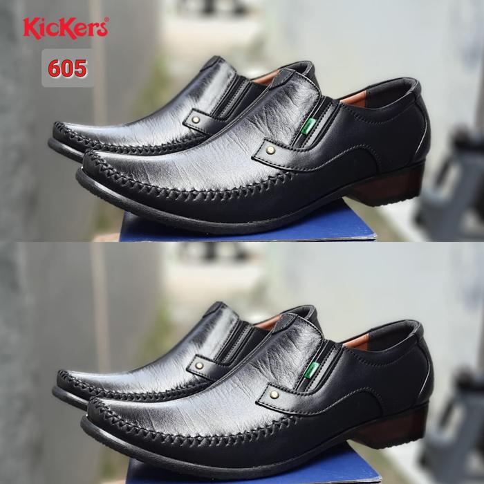 FLASH SALE SEPATU CASUAL PANTOFEL KERJA KANTOR KICKERS PRIA KULIT ASLI K605 HITAM 39