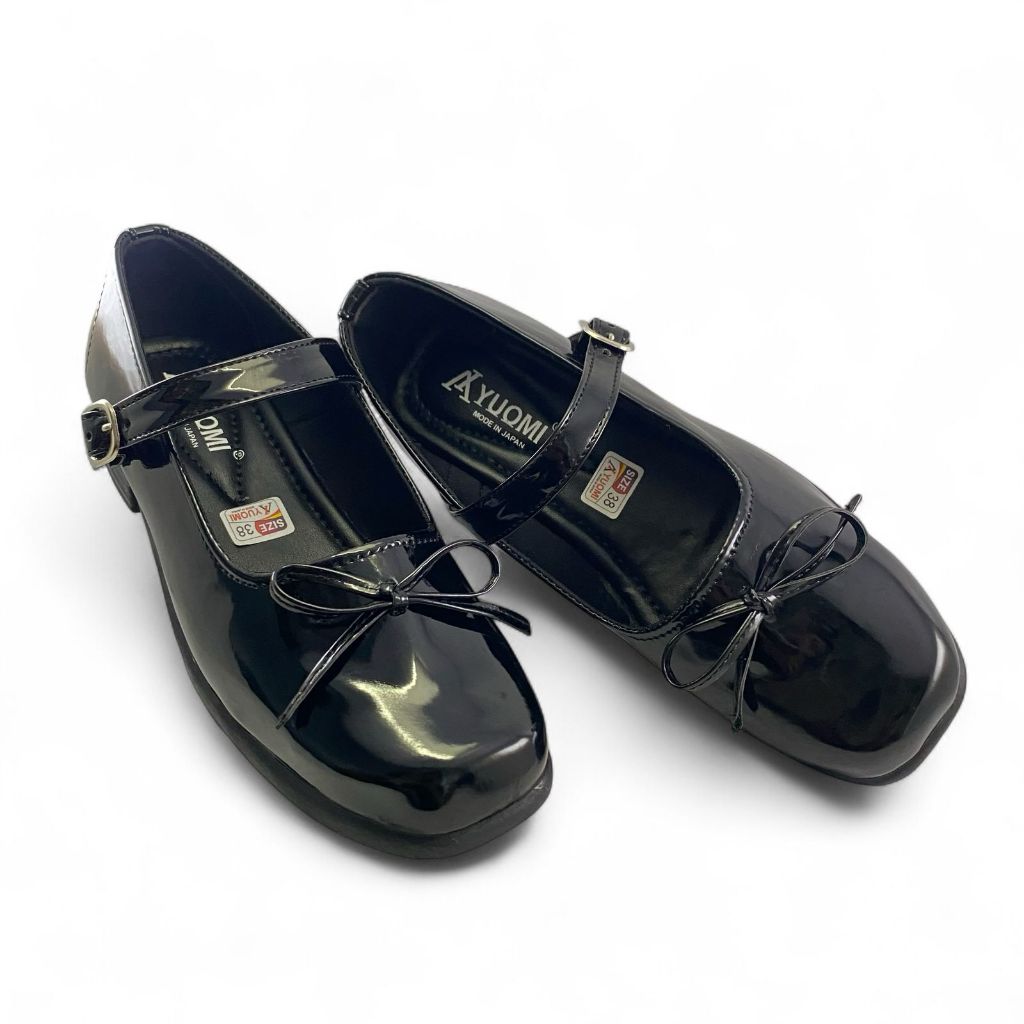YUOMI SEPATU PANTOFEL WANITA PASKIBRA HITAM GLOSSY GESPER HAK 3CM